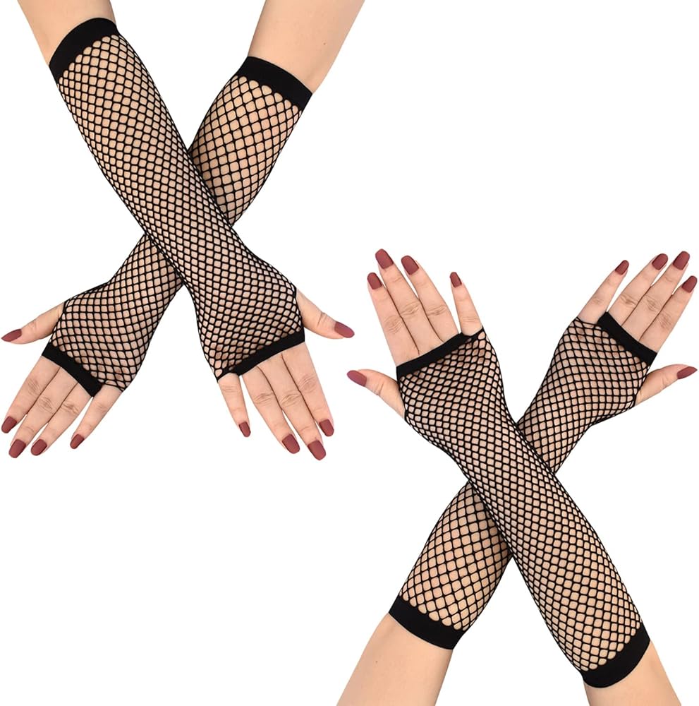 2 Pairs Fishnet Gloves Women's Mesh Fingerless Gloves for 80s Costume Theme Party