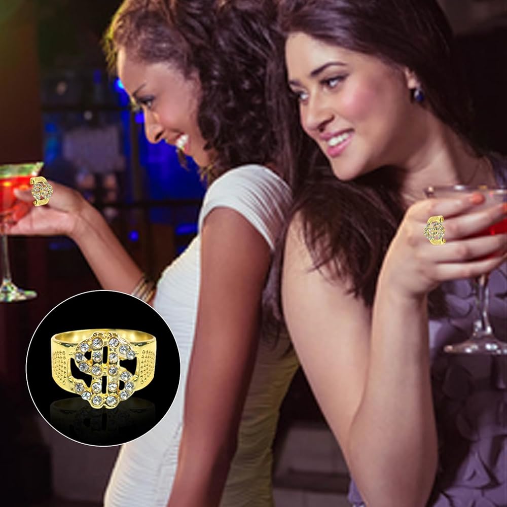 【Easy to Wear and Comfortable Fit】 - The dollar necklace chain is adjustable, allowing you to customize the length to suit your preferences. The fake gold necklace is high polished finish and smooth .The finger ring is one-size-fits-all, making it easy to wear for most people. The hip hop sunglasses feature comfortable, lightweigt . The lightweight design of each accessory means you can wear them without feeling weighed down, making it perfect for performances, parties, or daily wear.