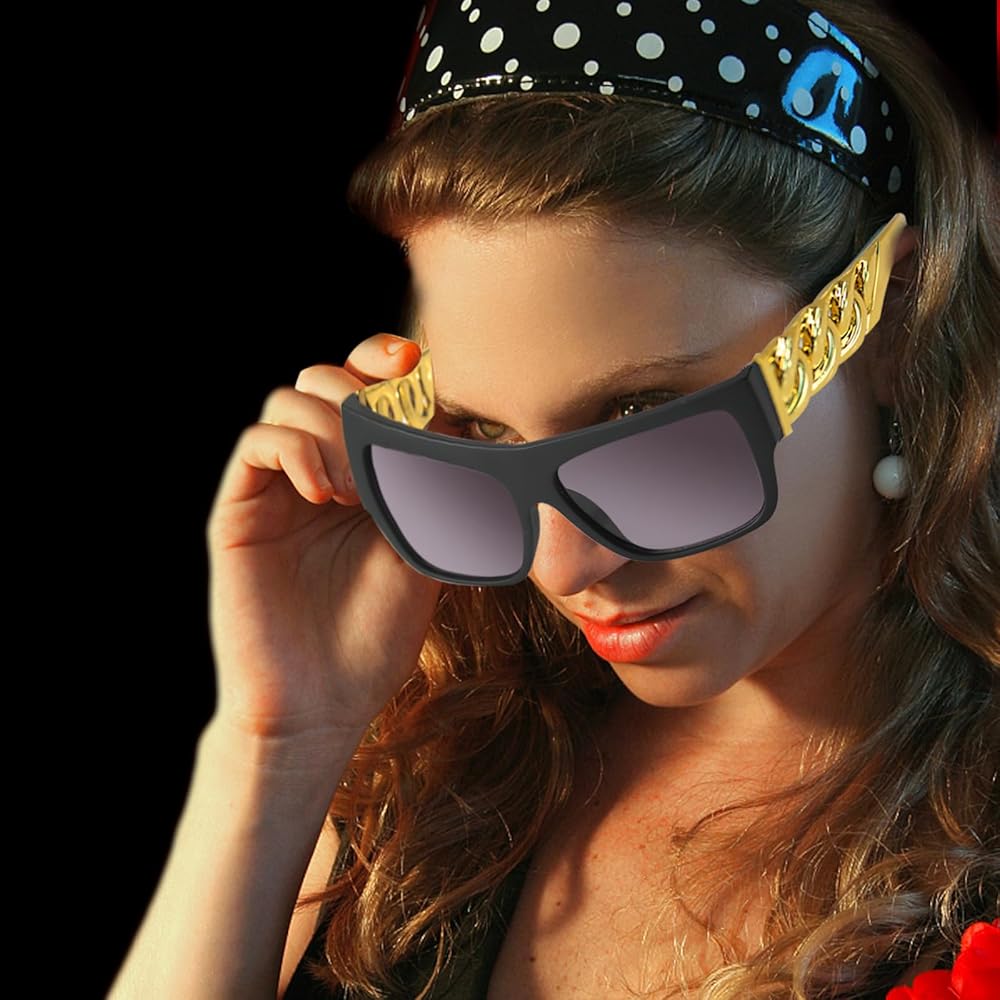 【Retro 80s 90s Hip Hop Style】 - This kit includes a dollar necklace chain, finger ring, fake gold necklace, and hip hop sunglasses, all crafted to capture the essence of the golden age of hip hop. Whether you're dressing up for a themed party, a music video shoot, or just want to add a touch of old-school flair to your outfit, this costume set is an essential addition to any hip hop enthusiast's wardrobe.