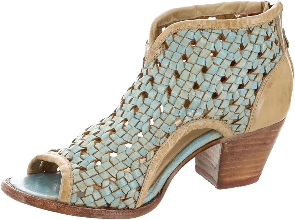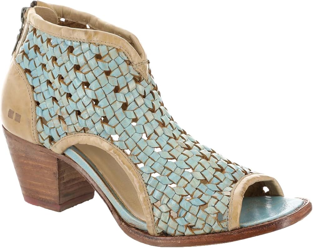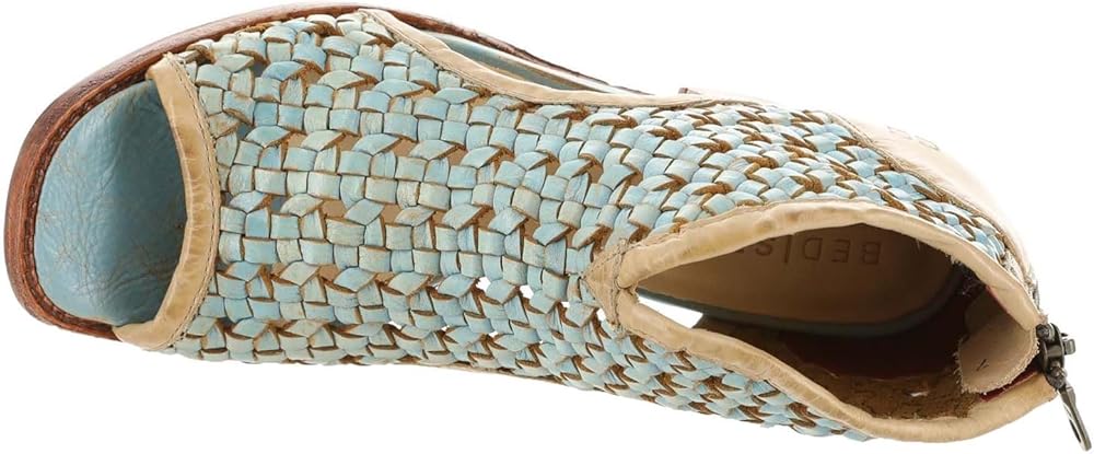 Grab everyone's attention wherever you go wearing the Bed Stu ransom sandals. The leather upper of these sandals boasts intricate weaving that gives them an eye-catching appeal and offers breathability. These heeled sandals come with a leather insole and breathable leather lining that keep your feet comfortable all day. The zippered closure at the back offers easy wear. From casual outings to parties, these leather heels work for different occasions. Peep toe design. Leather outsole.