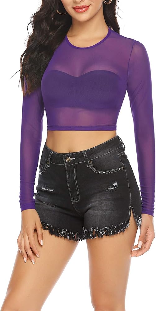 【Material】This white/black/nude sheer crop top is made of 85% Polyester, 15% Acrylic. It is soft lightweight breathable and stretchy, comfortable enough to wear to bed to sleep in also for out going .
