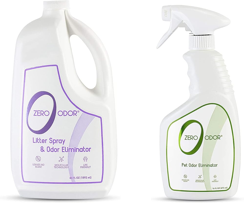 Zero Odor - Pet Odor Eliminator - Permanently Eliminate Air & Surface Odors 16 Oz – Litter Odor Eliminator 64oz Refill