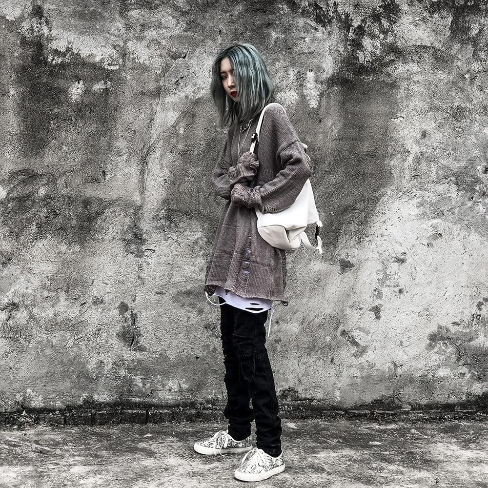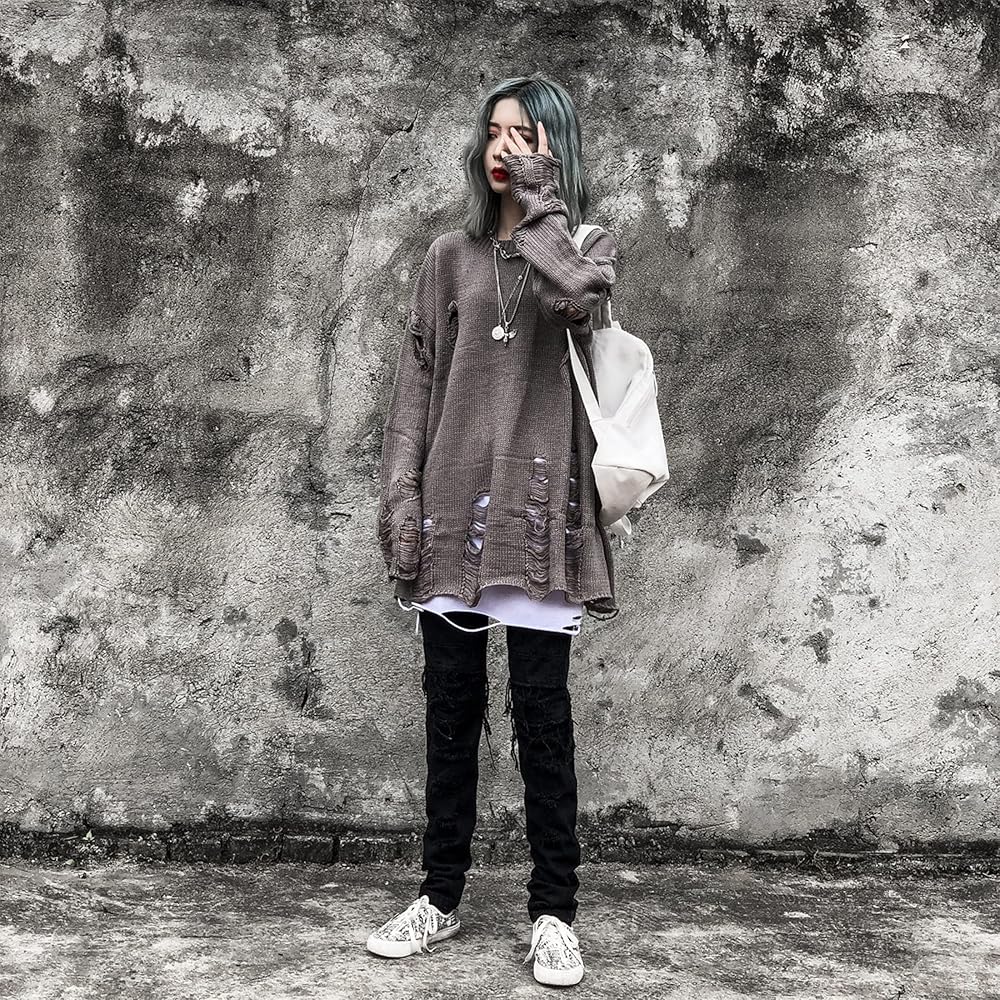 ❤Loose oversized fit, neutral bf knitted long sweater tops, broken y2k alt sweater