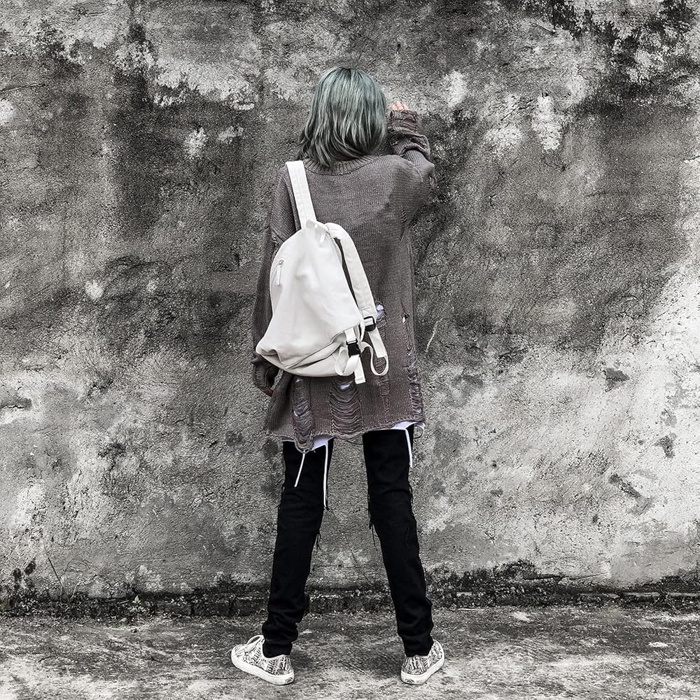 ❤Round neck, long sleeve drop shoulder and distressed hollow out striped emo unisex jumper sweater