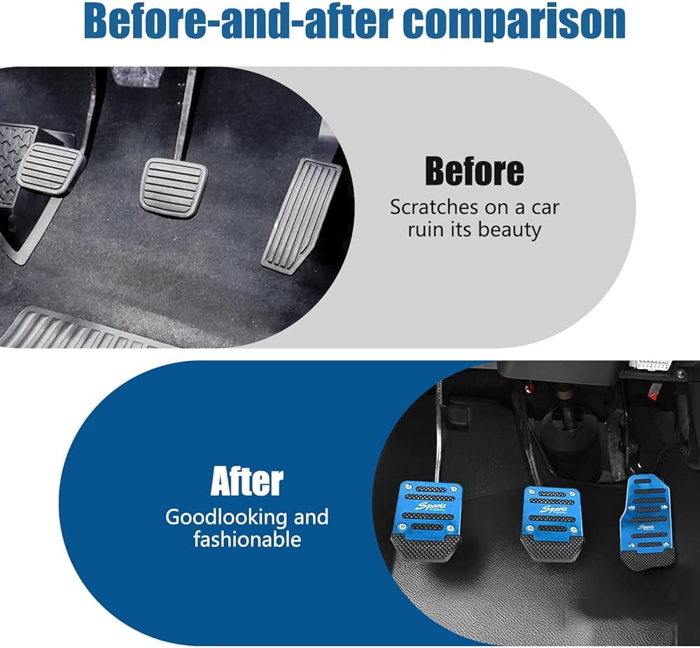 Product Use: This car pedal kit makes your driving process safer. It increases the contact area of the pedal, making it easier for you to operate the pedal. The stripes on the surface of the pedal increase friction, reduce the possible slipping during driving, and ensure your driving safety.