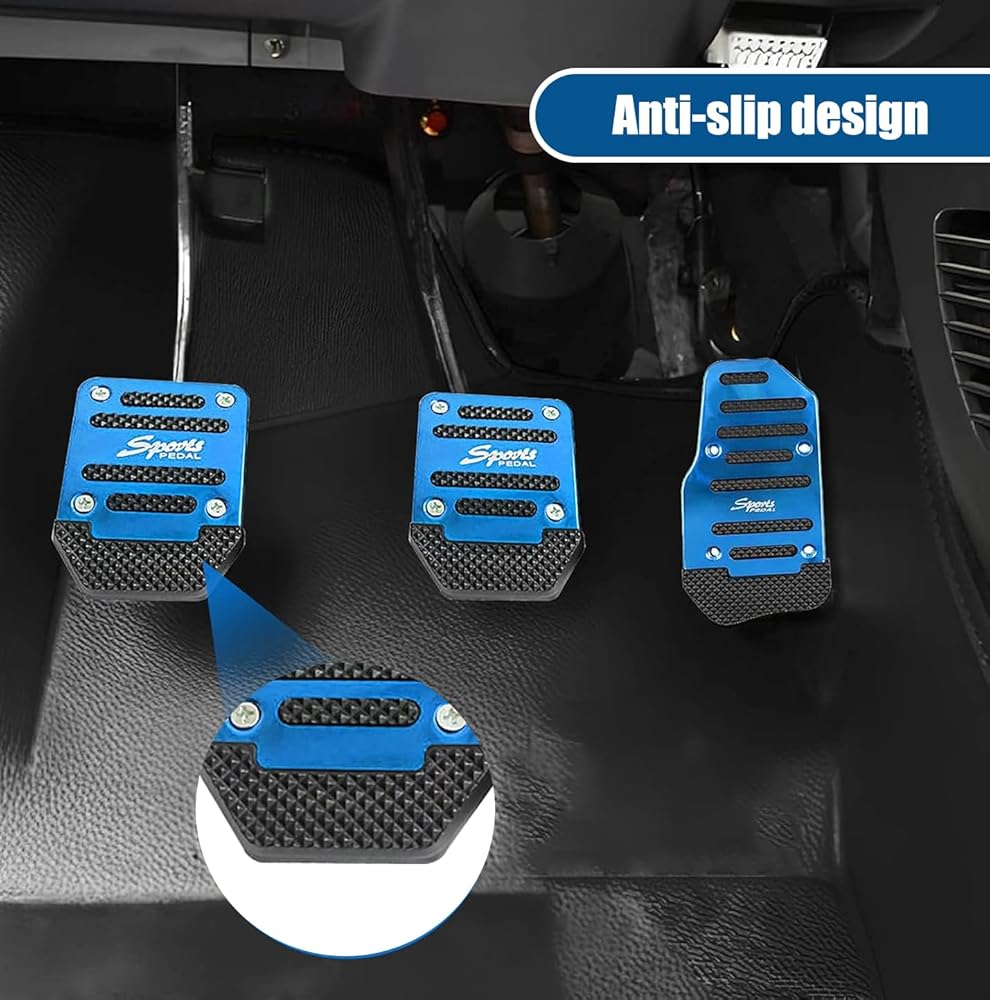 Prywog 3 PCS Car Foot Pedal Accelerated Brake Board, Manual Shield Pedal Set, Non-slip Metal Striped Pedal Kit, Universal for Most Cars (Blue)