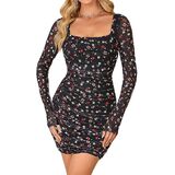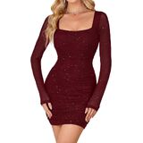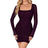 Features: The party mini dress feature sparkly material, square neck design, mesh sheer sleeves, slim fitting, back zipper, ruched bodycon dress. The semi formal dresses is perfect for women and teen girls, easy to show your curve and make you elegant and the mini dress always offers a comfortable fit.