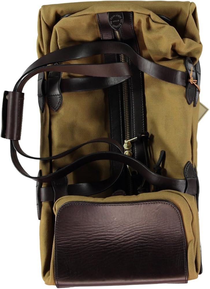 Our Small Rolling Duffle bag has heavy-duty Rugged Twill, leather reinforcements and stabilizing rails for added durability. Two wide wheels and a retractable handle.
