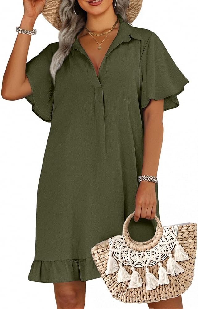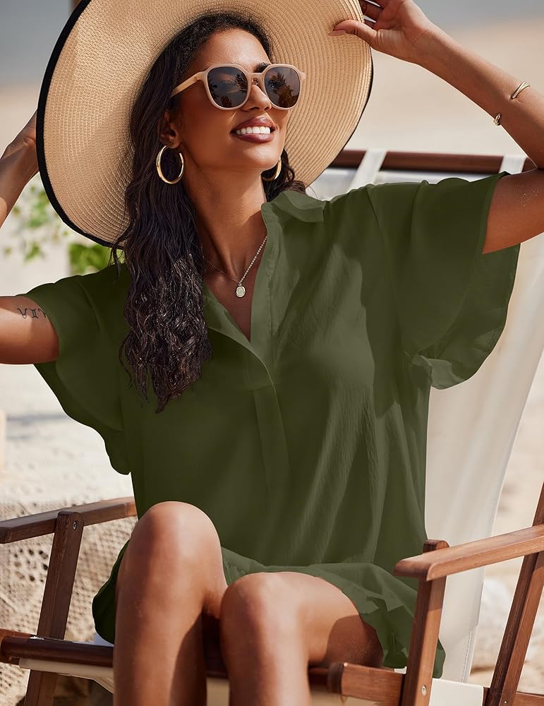 Unique Design: Ruffle Short Sleeve, ruffle hem and shirt V neck, makes you look cute. Loose fit bathing suit cover up is suitable for women of all shapes