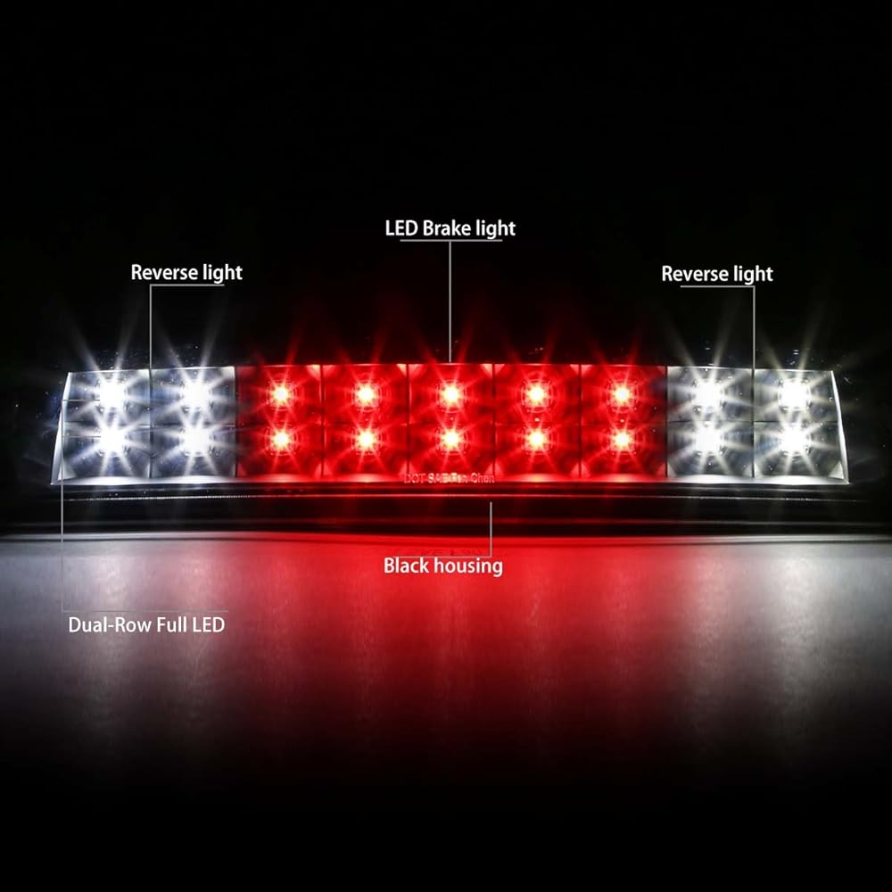 Our LED third brake light is a quick and easy way to dress up your pickup truck. When lit, the bright LEDs (Light Emitting Diodes) are illuminated, and shine up to ten times brighter than standard light bulbs. The LED third brake light has a durable Polycarbonate Lens with free form reflector, and available with either the Clear lens or custom Smoked lens.