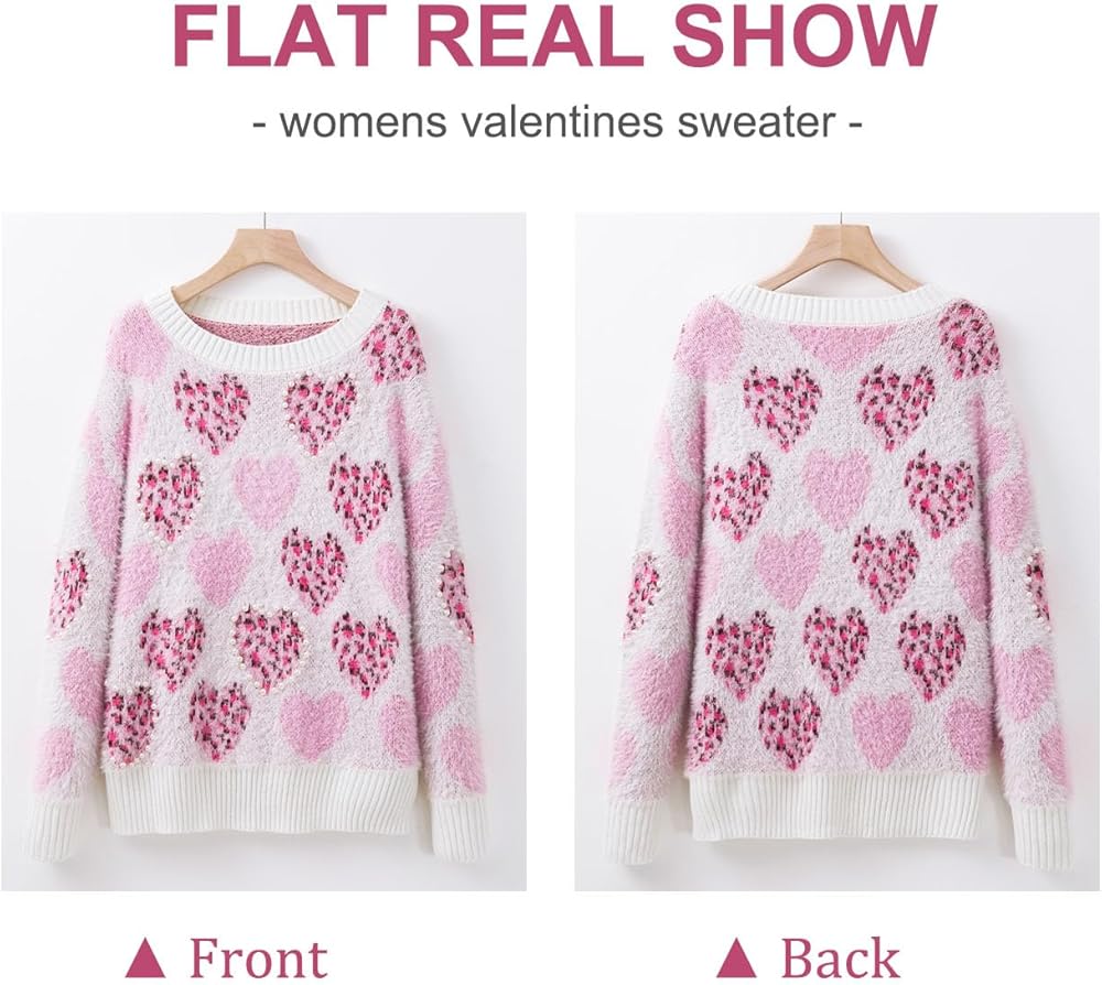 Material: 85% viscose+15% polyamide, super soft, lightweight and skin-friendly fabric. The heart sweater is great for Valentine's Day, keep eye-catching and delicate.