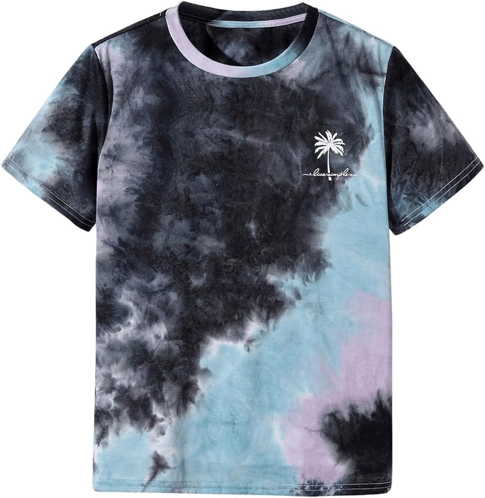 DESIGN: Boys' T-Shirts,trendy tie dye, tropical print, short sleeve, round neck, casual, soft, trendy fashion, lightweight
