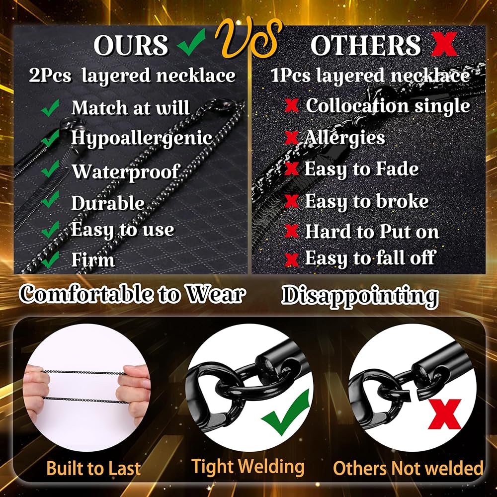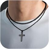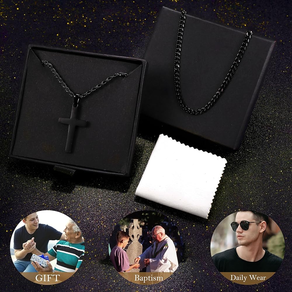 【Great Gift】:Layered cross necklace packaged in a black box accompanied by a Polishing cloth, cross necklace is meticulously presented to maintain its brilliance.An ideal gift for your brother or father, it's perfect for birthdays, Christian baptisms, Good Friday, anniversaries, and Christmas celebrations.