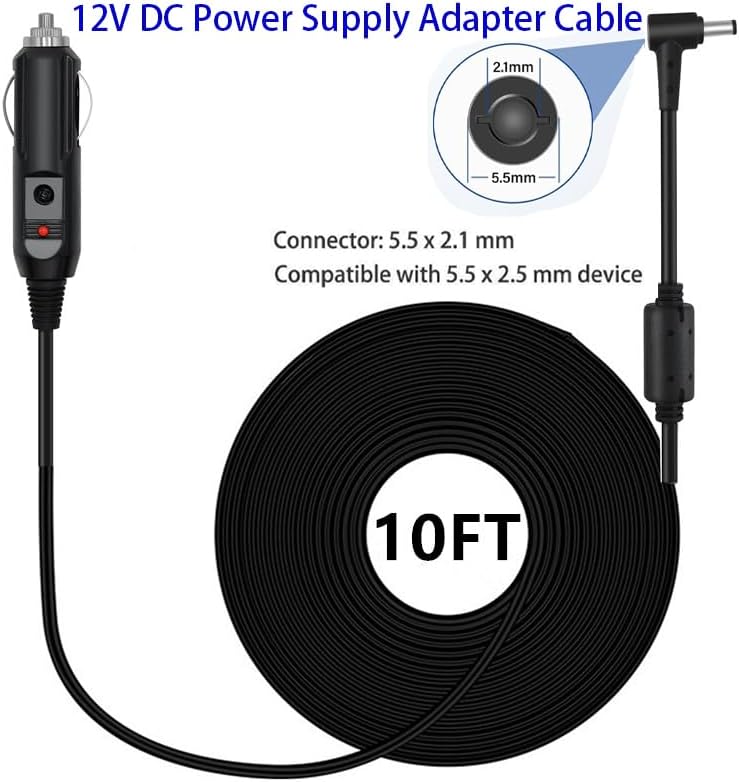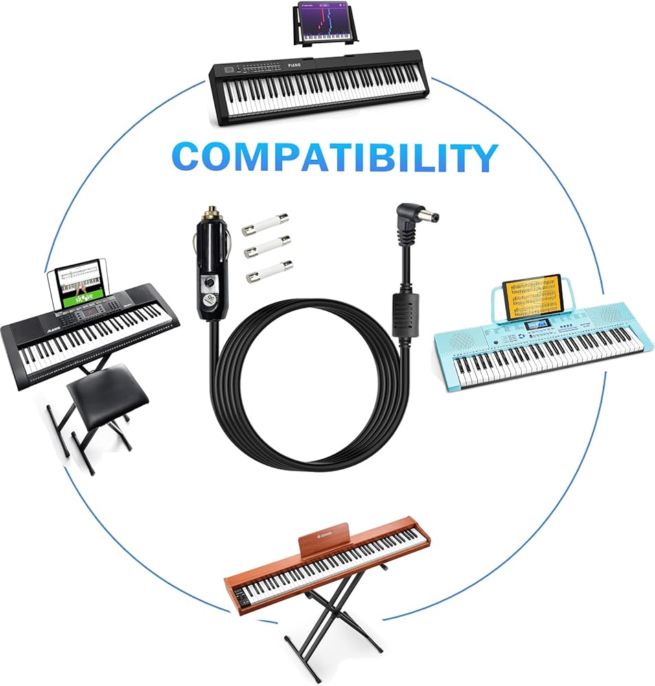 Car Charger Auto Power Supply 20AWG Cable3M,DC 5.5mm x 2.5mm to Car Adapter Replacement for BCP SKY3160 Keyboard Power Supply Adapter Cord Cable(with Additional Fuse 3 Individual
