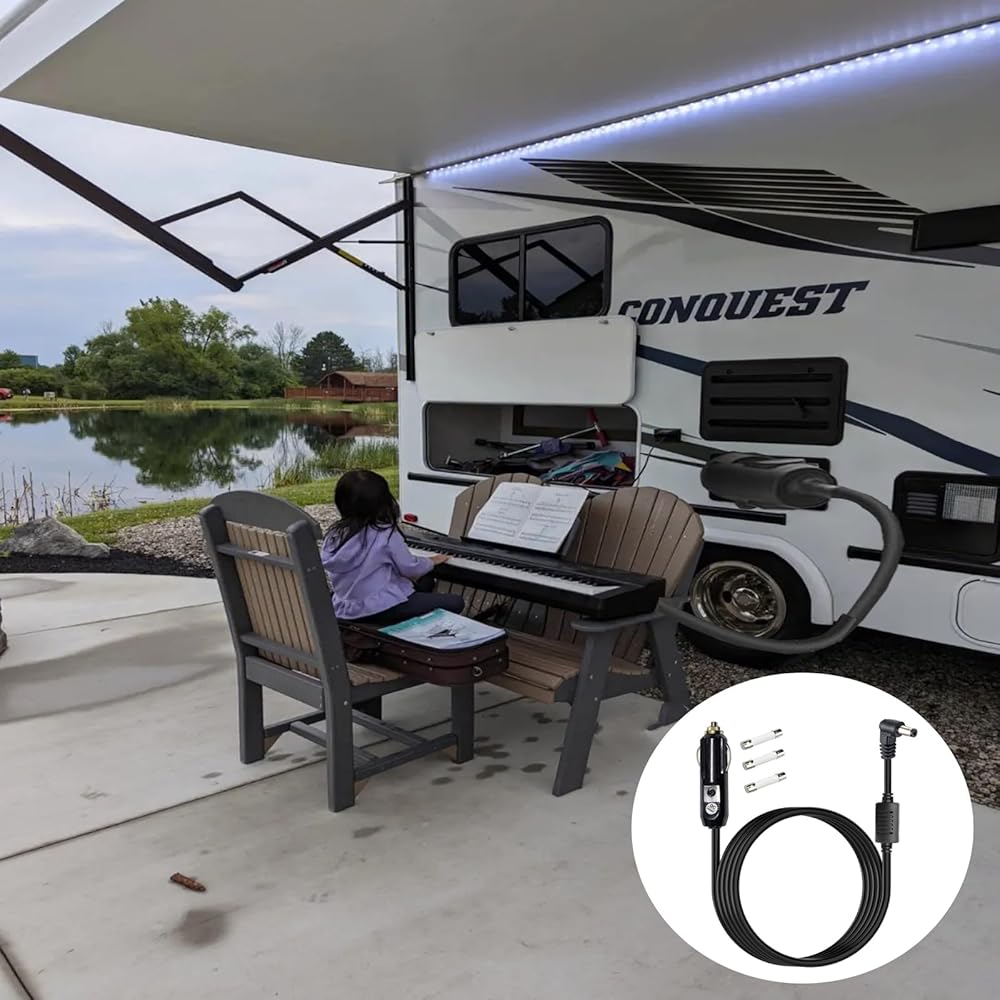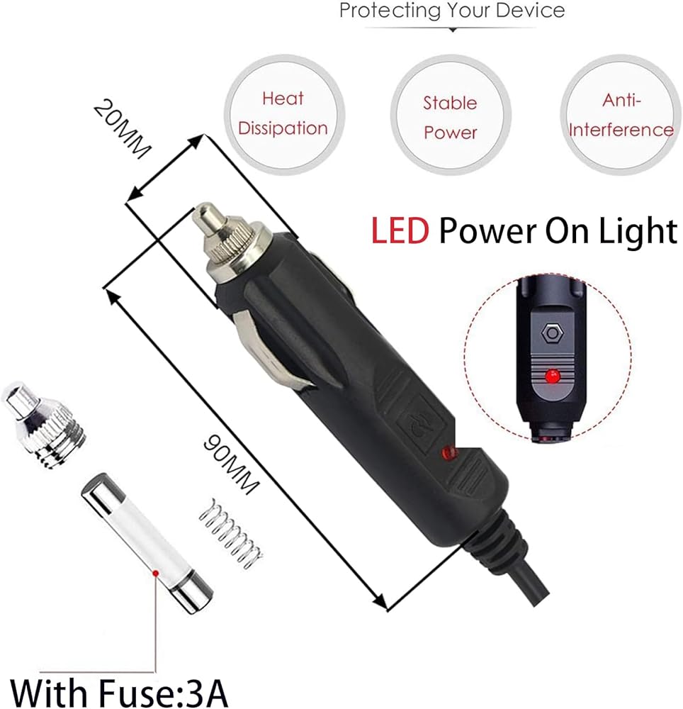 The cigarette lighter DC power cord is only suitable cable is 3m / 9.84 feet. This is ideal when you want to use the TV on the road with an RV or truck or on a boat, A replaceable 3 amp fuse is built in to protect the car, and the cigarette lighter plug with LED light indicates whether you are working, rugged, and safe to use.
