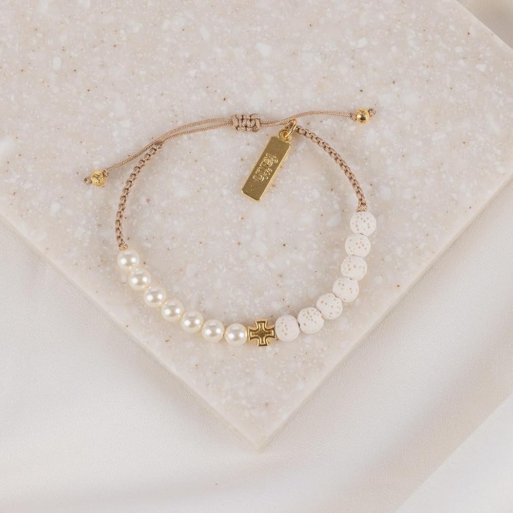 Wear this bracelet as a reminder that God's extreme mercy and grace are more powerful than we can comprehend. The lava and heirloom crystal pearls are reminders that life is full of rough and smooth moments. The Cross in the center is a sign of God's unfailing love throughout all of your smooth and rough days.