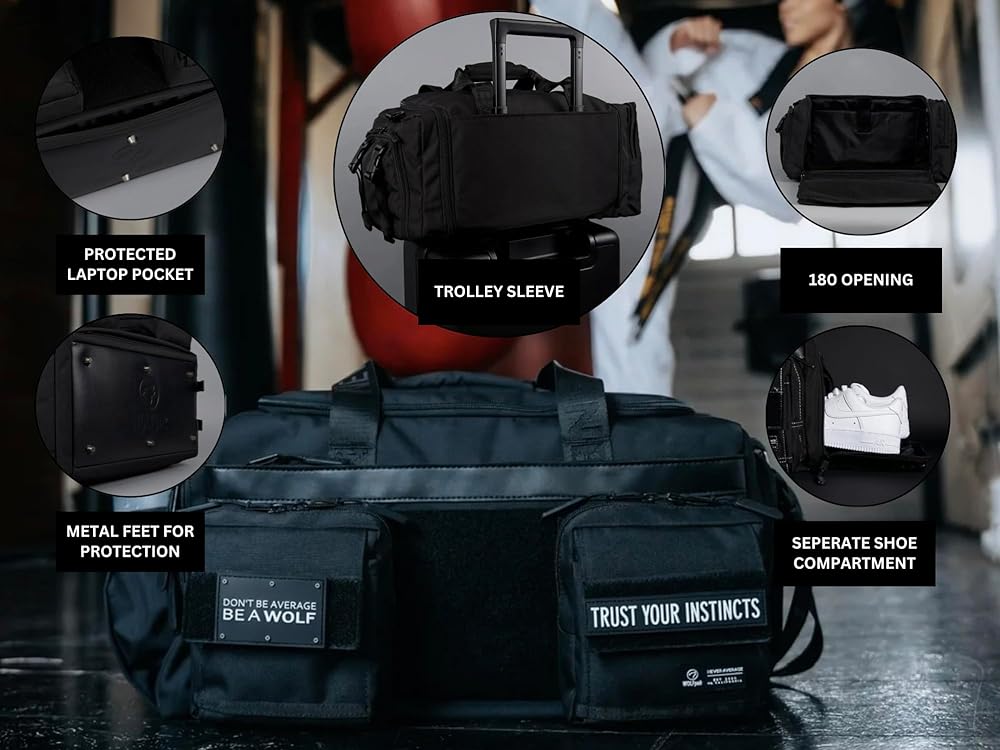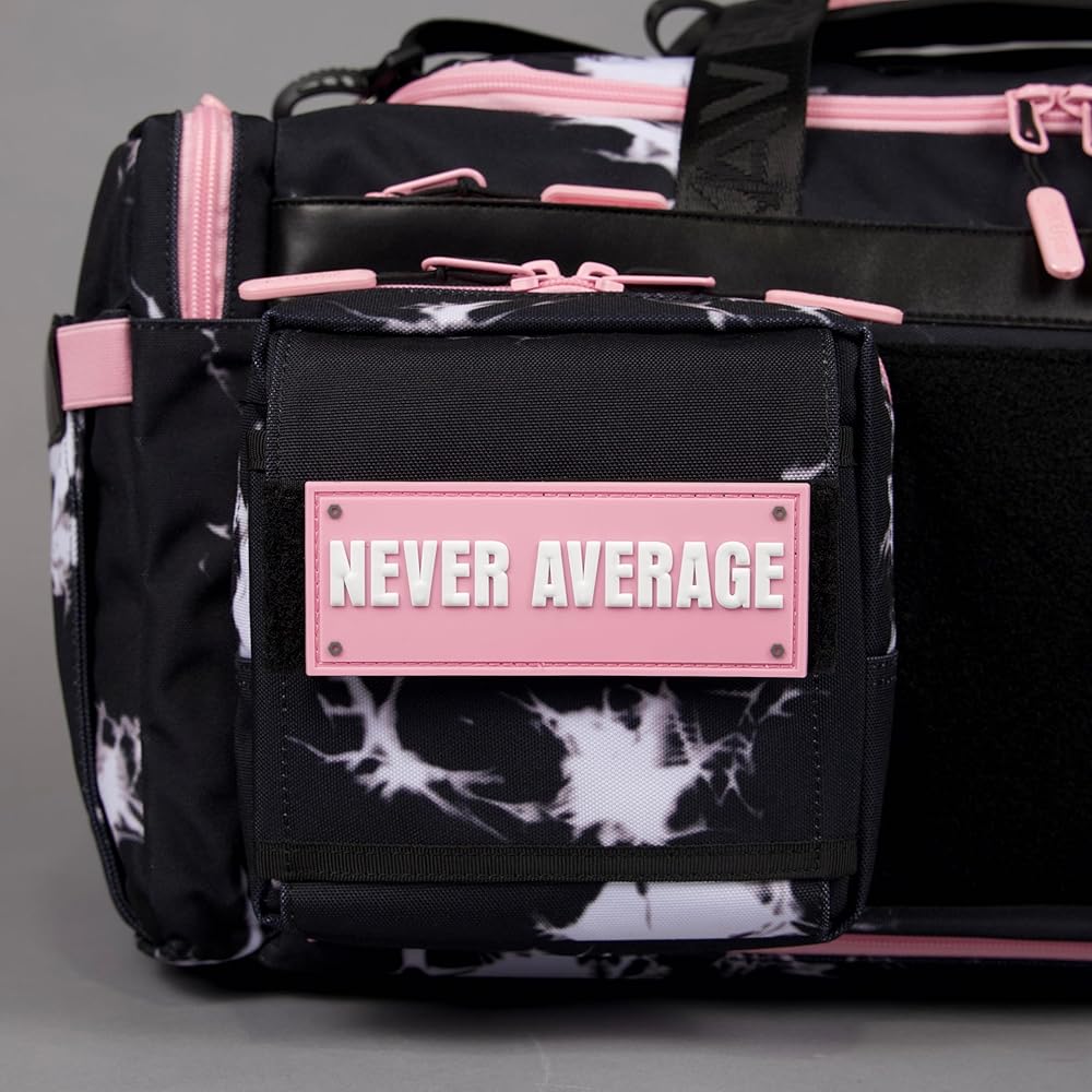 WOLFpak Ultimate 40L Gym & Travel Duffle Bag | Heavy-Duty Gear Bag w/Durable Waterproof 1000D Oxford Material | Hard Shell Base, Laptop Sleeve, Custom Patch Options | (Black Lightning Knockout Pink)