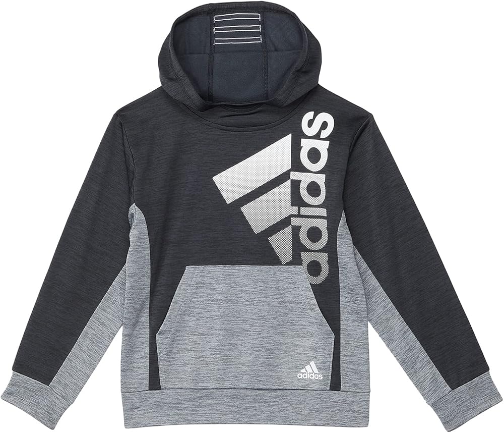 He's not shy about showing off a bold, sporty style. And this boys' hoodie delivers that in spades. The iconic adidas Badge of Sport gets turned on its side, literally, for an attention-getting look that's one of a kind. The fleece material is extra soft for cozy cool-weather layering.