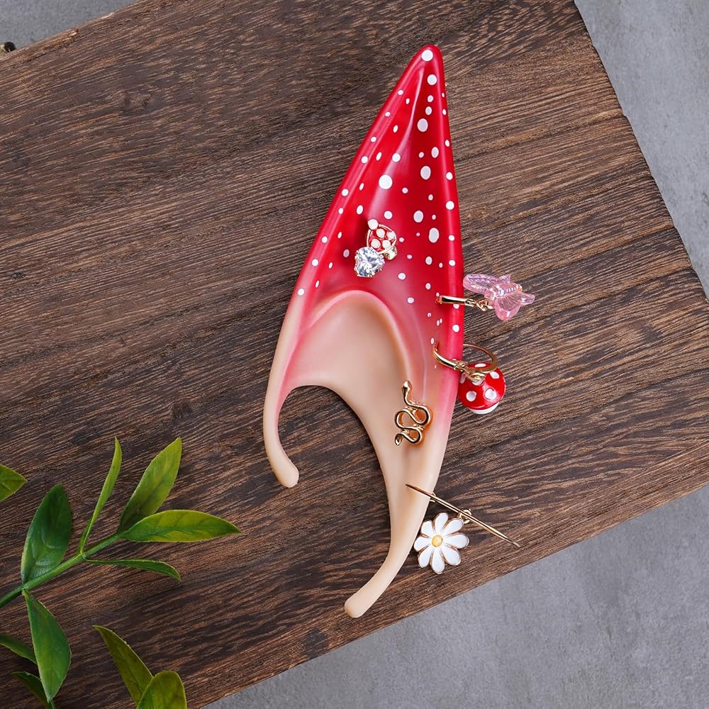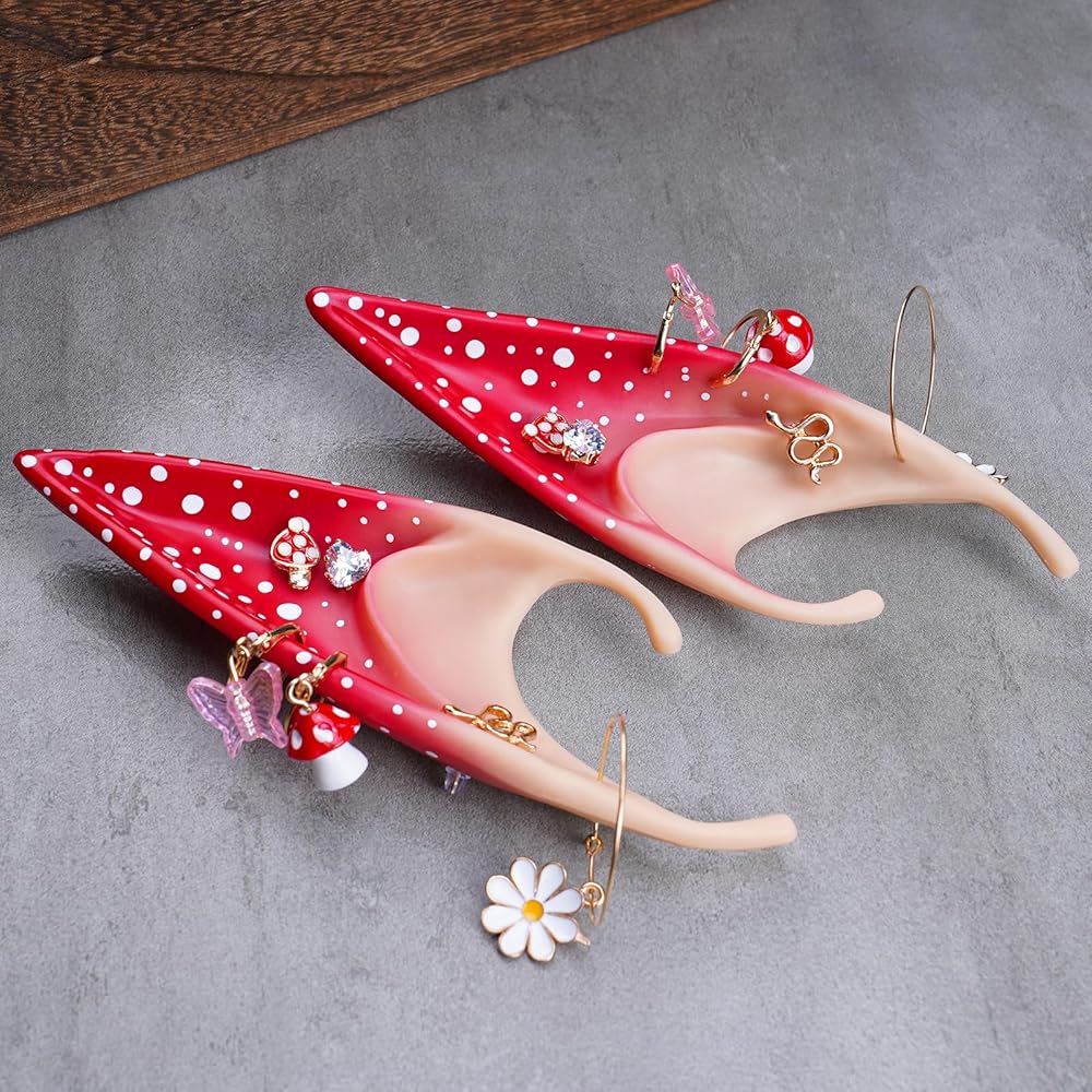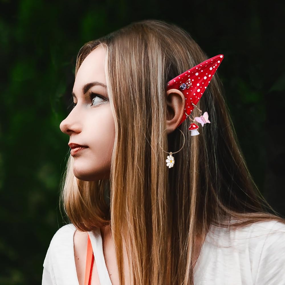 Red Mushroom Elf Ears: New and improved mushroom elf ears, 100% handmade and durable. Made of high-quality materials, these Elf ear cuffs are lighter and more durable than previous products, providing you with a comfortable wearing experience. These dreamy fairy mushroom earrings are perfect for everyone who pursues beauty