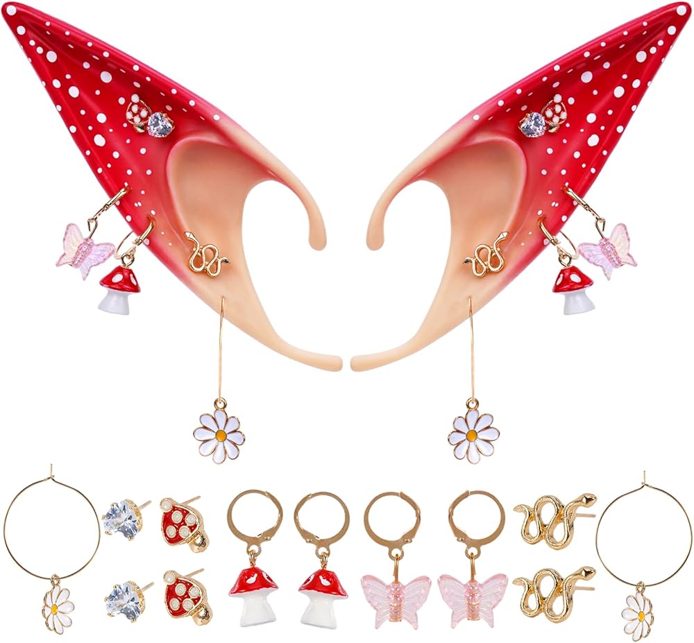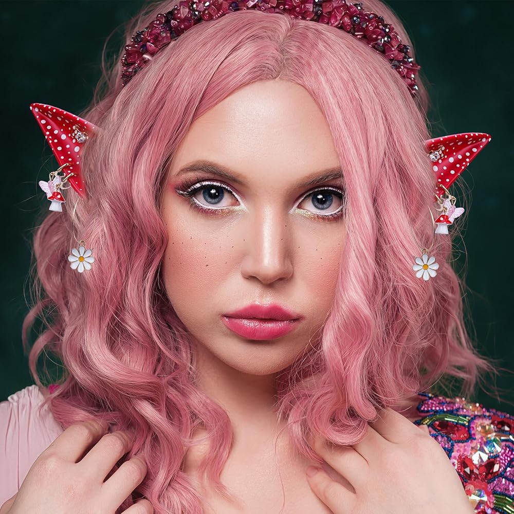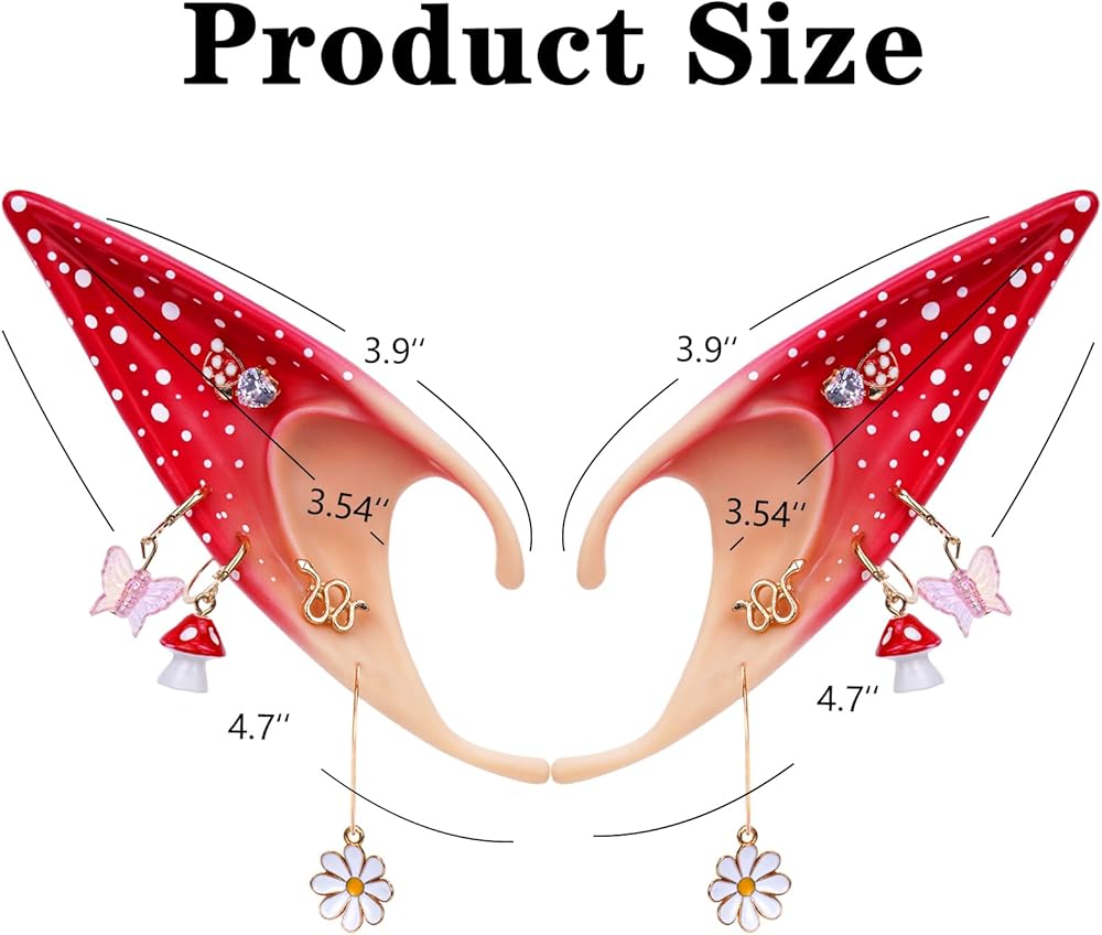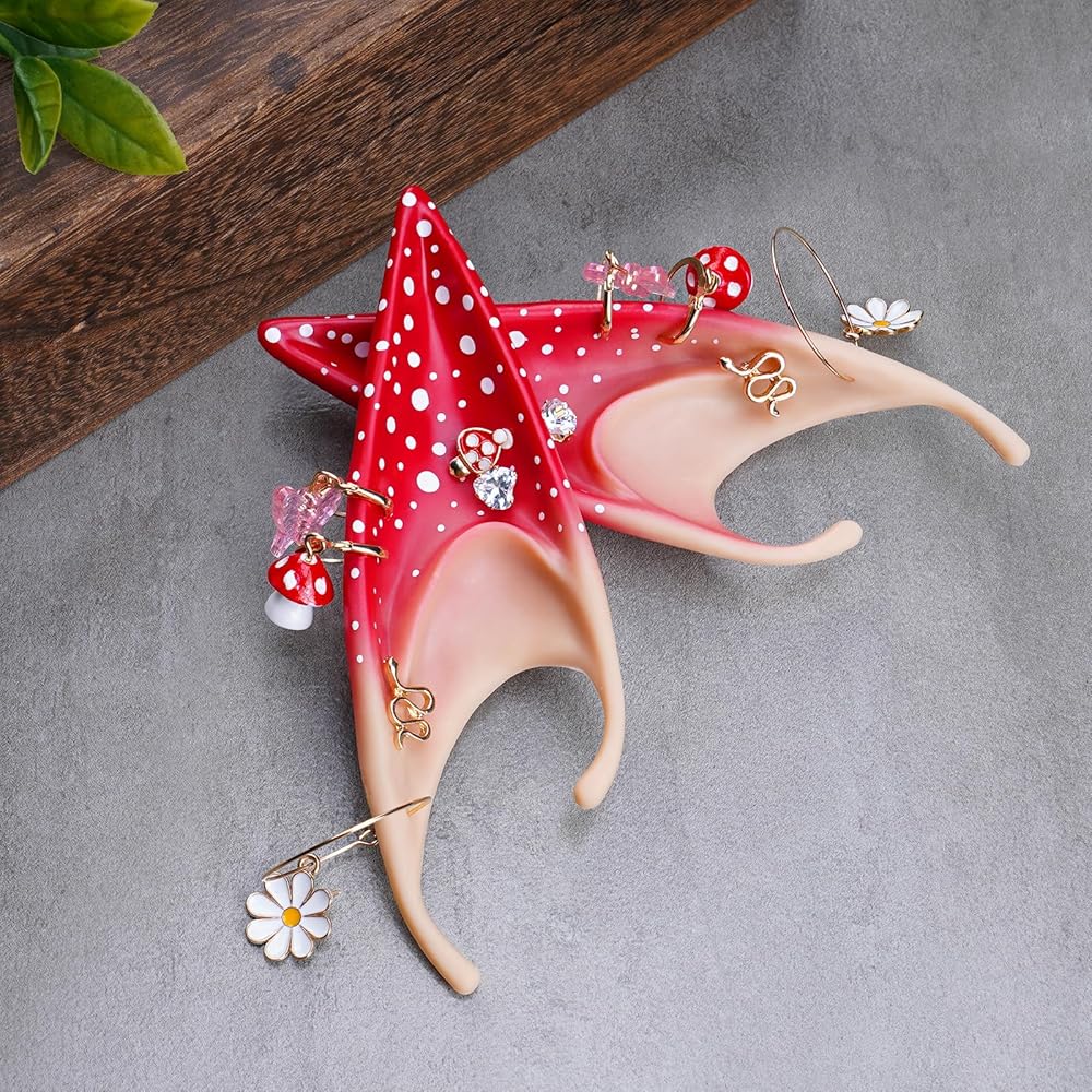 Red Mushroom Elf Ears: New and improved mushroom elf ears, 100% handmade and durable. Made of high-quality materials, these Elf ear cuffs are lighter and more durable than previous products, providing you with a comfortable wearing experience. These dreamy fairy mushroom earrings are perfect for everyone who pursues beauty