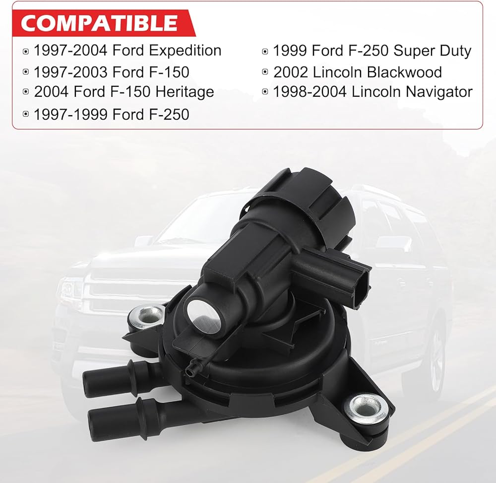 Engine Compatibility: This Vapor Canister Purge Valve is compatible with 1997-2004 Ford Expedition, 1997-2003 Ford F-150, 2004 Ford F-150 Heritage, 1997-1999 Ford F-250, 1999 Ford F-250 Super Duty, 2002 Lincoln Blackwood, 1998-2004 Lincoln Navigator. Please verify the compatibility with your specific vehicle make, model, and engine size before making a purchase.