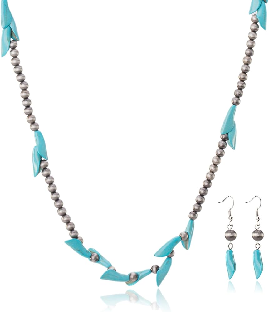 Montana West Rustic Couture's Western Turquoise Jewelry Set for Women Multi Layer Necklaces Navajo Cowgirl Beaded Neacklaces