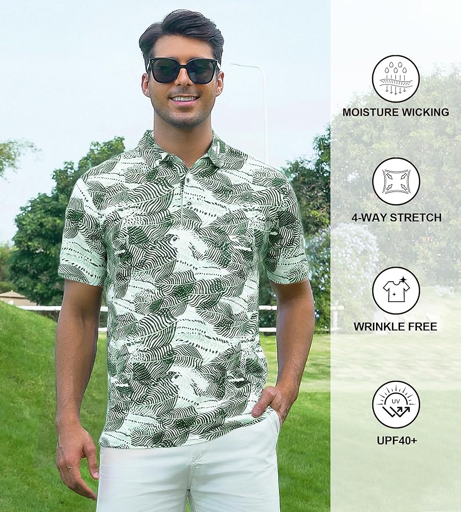 Classic Design:Featuring hawaiian prints such as tropical flowers, palm trees, and ocean elements, the fashion polo shirt adds vibrancy to your everyday look. The golf shirt's tailored fit offers a perfect balance between snugness and loosenes.