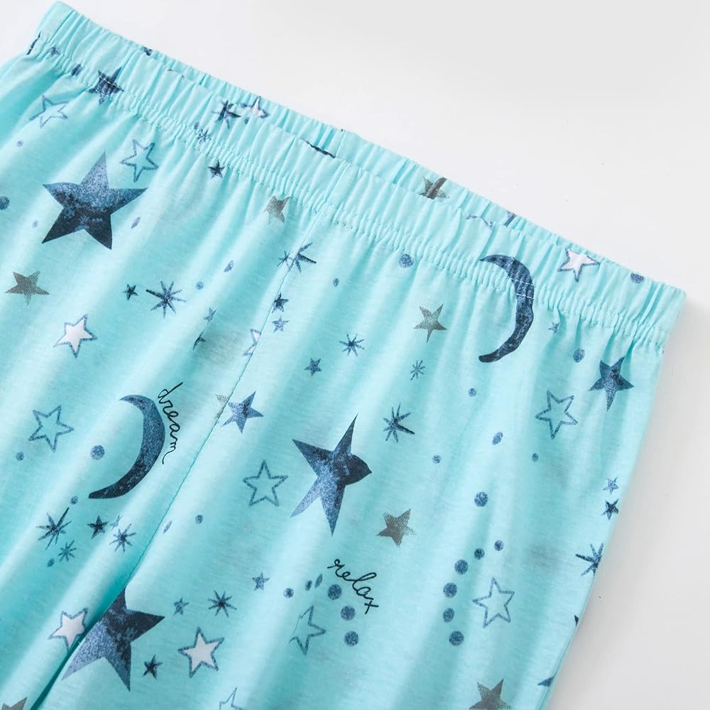 【Features】: This cute womens pajamas sets featuring a V-neck tee, short sleeve pajamas and prints, elastic waistband and drawstring capri pajama bottoms, this two piece pajama set will give you a pleasant sleep experience.