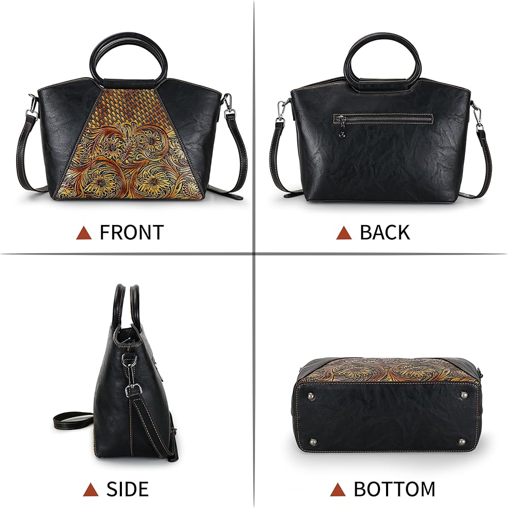 Feature: High Qualtiy Leather. It's a vintage design crossbody bag with embossing pattern. Functional for daily use, enjoy parties, go traveling, etc.