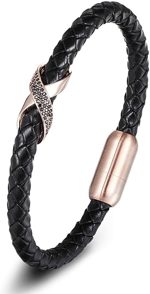 JO WISDOM Men Infinity Leather Bracelet Punk Leather Rope Braided Chain Bangle Stainless Steel Handmade Jewelry Gifts
