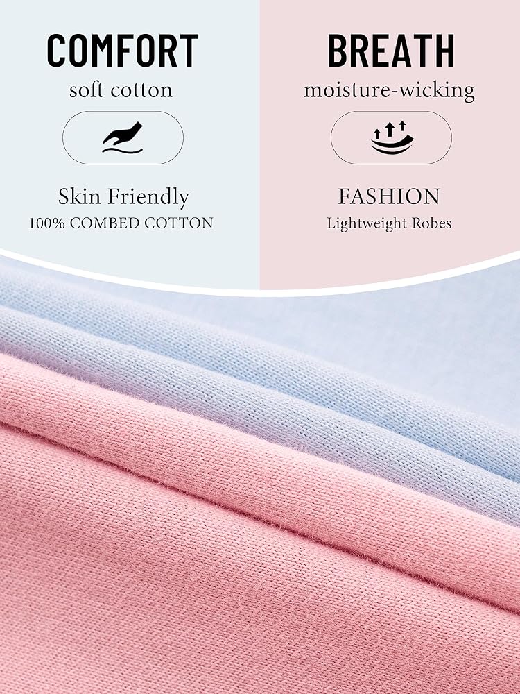 【Ideal Gift】Our womens robes lightweight cotton is a wonderful gift for mother, wife, girlfriend, daughter or friend. And it's also a good choice for birthday gift,Valentine's gift,and Anniversary gift.
