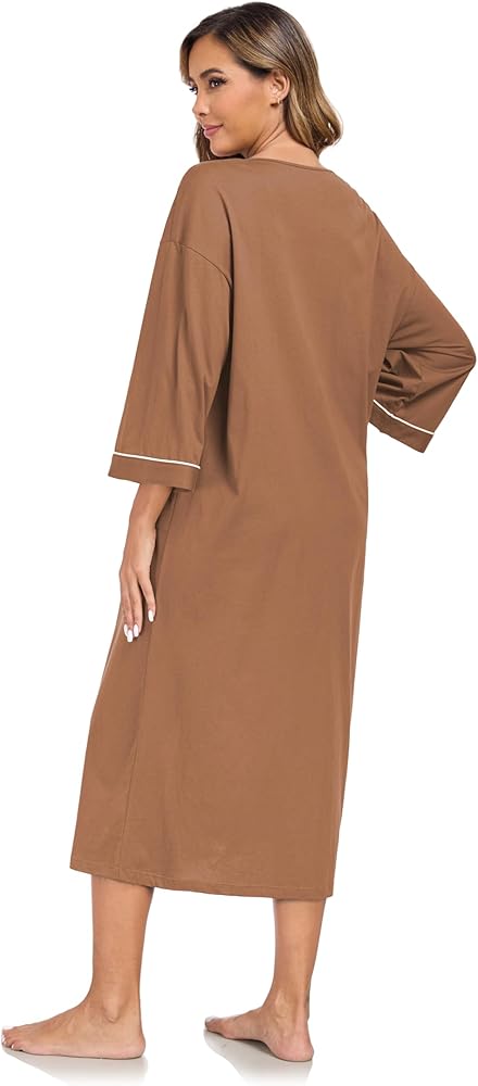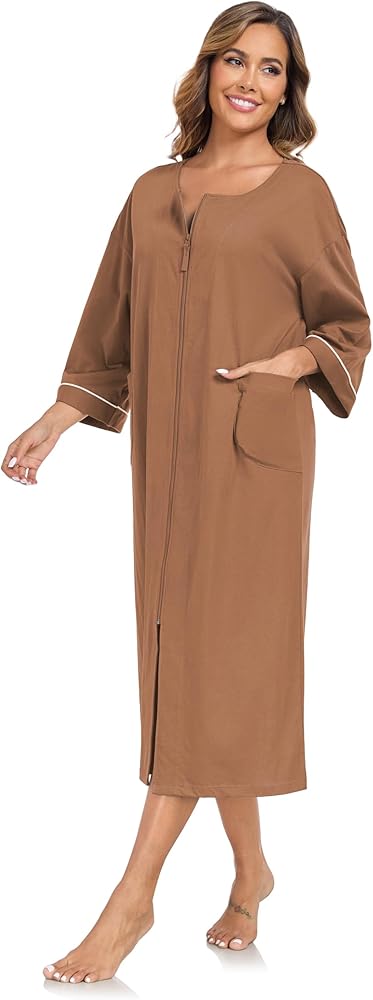 【Unique design】 The lightweight robes for women features 3/4 sleeves are perfect for doing dishes or other chores. The O neck zipper robes design allows you to feel comfortable and free without hair accumulation and the full Length style is suitable for year-round wear.