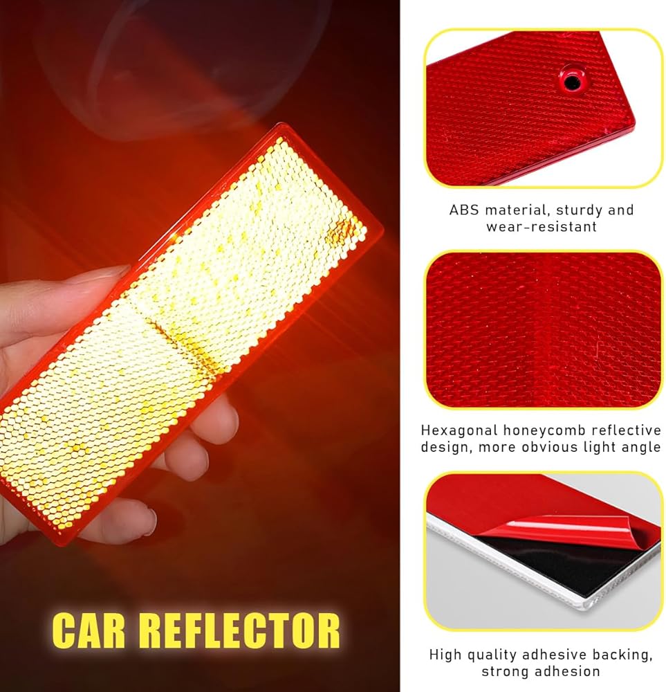 【Enhancing Driving Safety】: With extremely high reflectivity, this rectangular reflector emits a strong reflective effect at night, allowing your car to be seen from a distance, warning vehicles behind you to keep a safe distance and improving the safety of night riding.