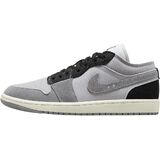 Air Jordan 1 Low SE Craft silhouette Canvas upper Suede overlay Foam collar Perforated toe box Embroidered Jumpman logo on tongue Swoosh on side panel with stitching details Embroidered Air Jordan Wing logo on rear Flat cotton laces Rubber outsole Style: jbdz4135-002 Color: Tech Grey / Black Cement Material: Canvas / Suede
