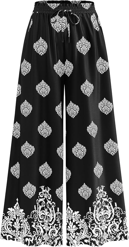 Breathable Material:100% Polyester. These wide-leg pants are for women that are Super soft, lightweight, flowy, and skin-friendly, Ensuring maximum comfort and coolness. Wide leg pants woman/palazzo pants for women dressy/flowy pants for women/beach pants for women/floral pants with pockets/boho pants for women