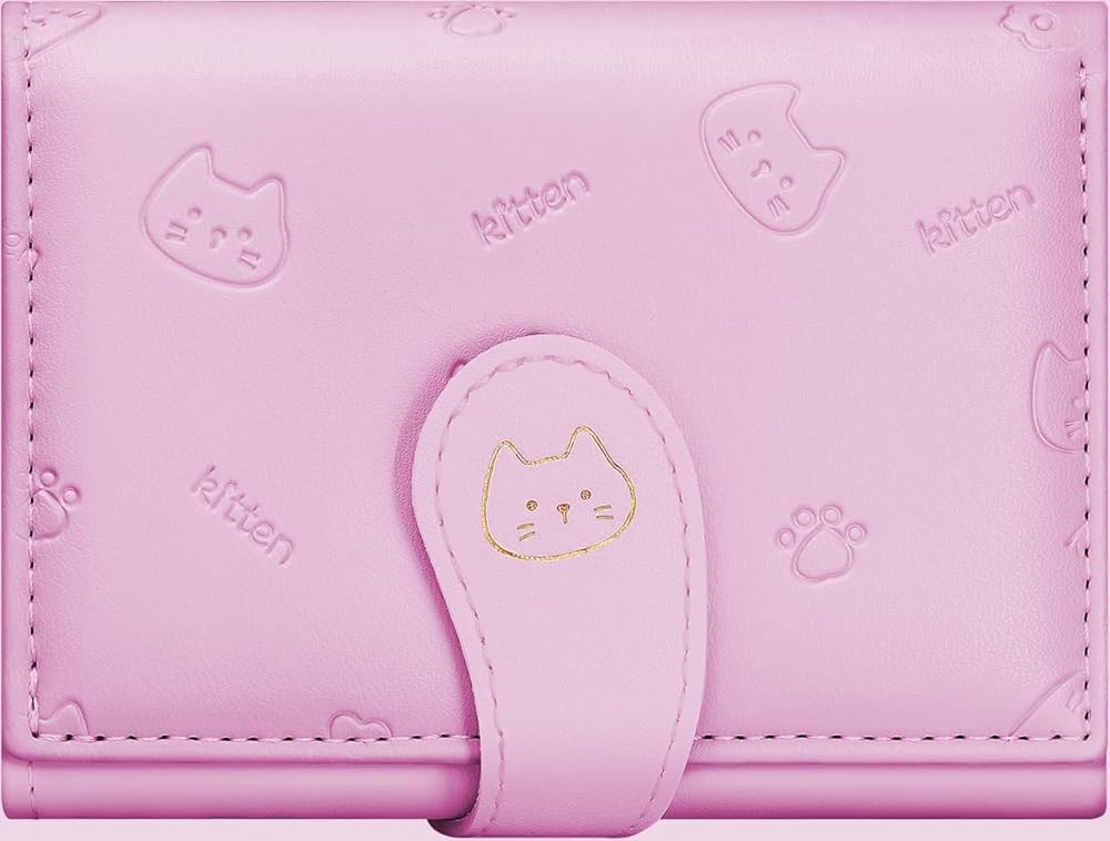 Cute Design: This cute wallet is designed with delicate and cute cat pattern, 1 photo window, 7 card slots and it is a fashionable item that highlights the cute character