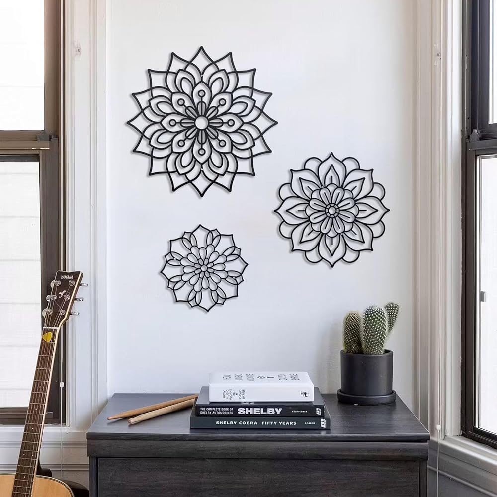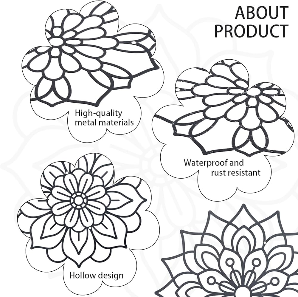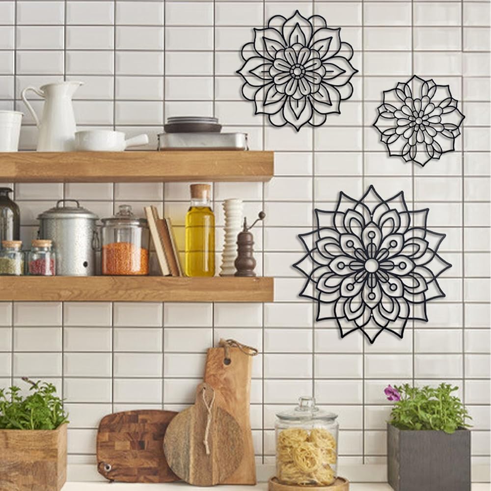 OYEFLY 3 Pieces Metal Flowers Wall Decoration,Flower Art Wall Decor Farmhouse Wall Decor (Black style2)
