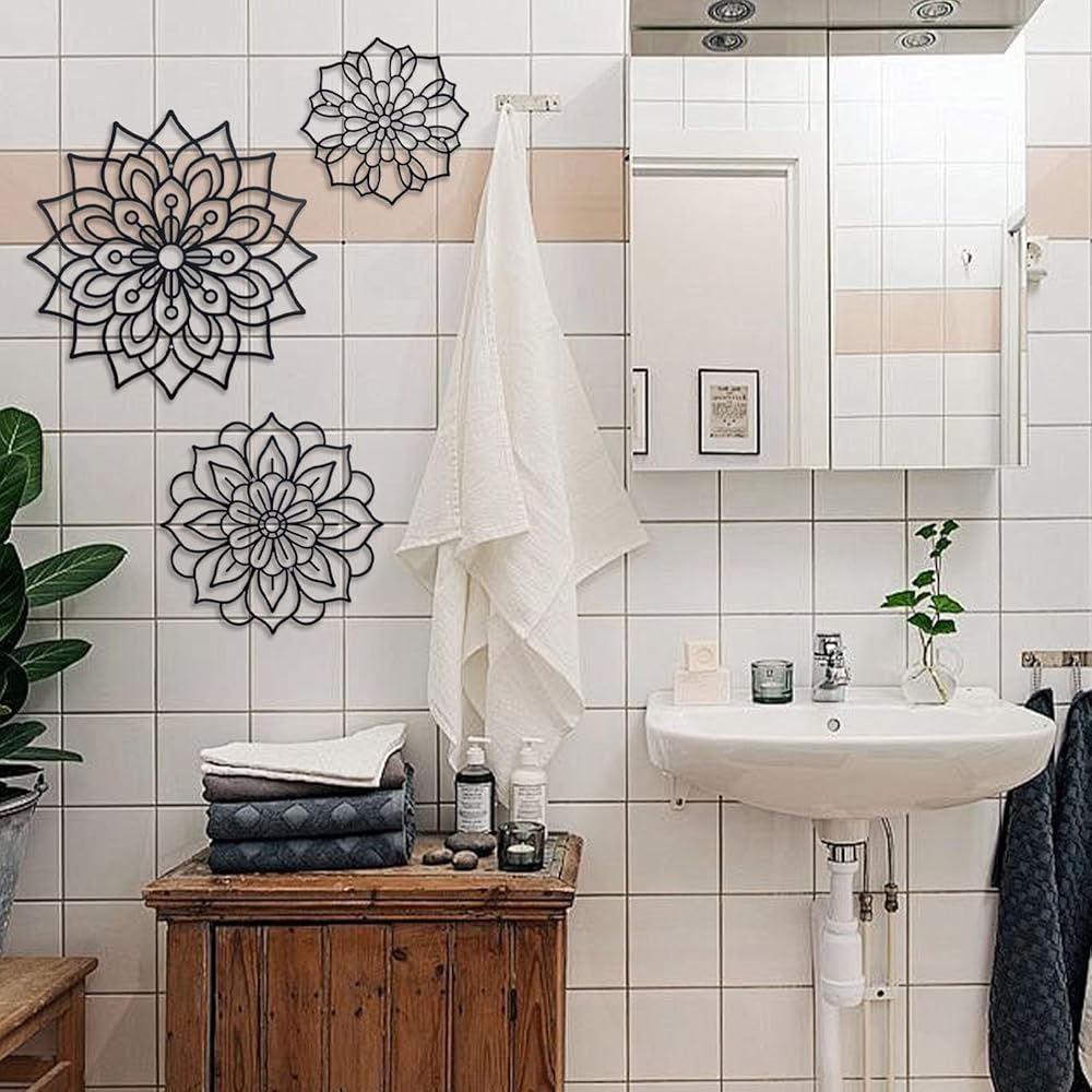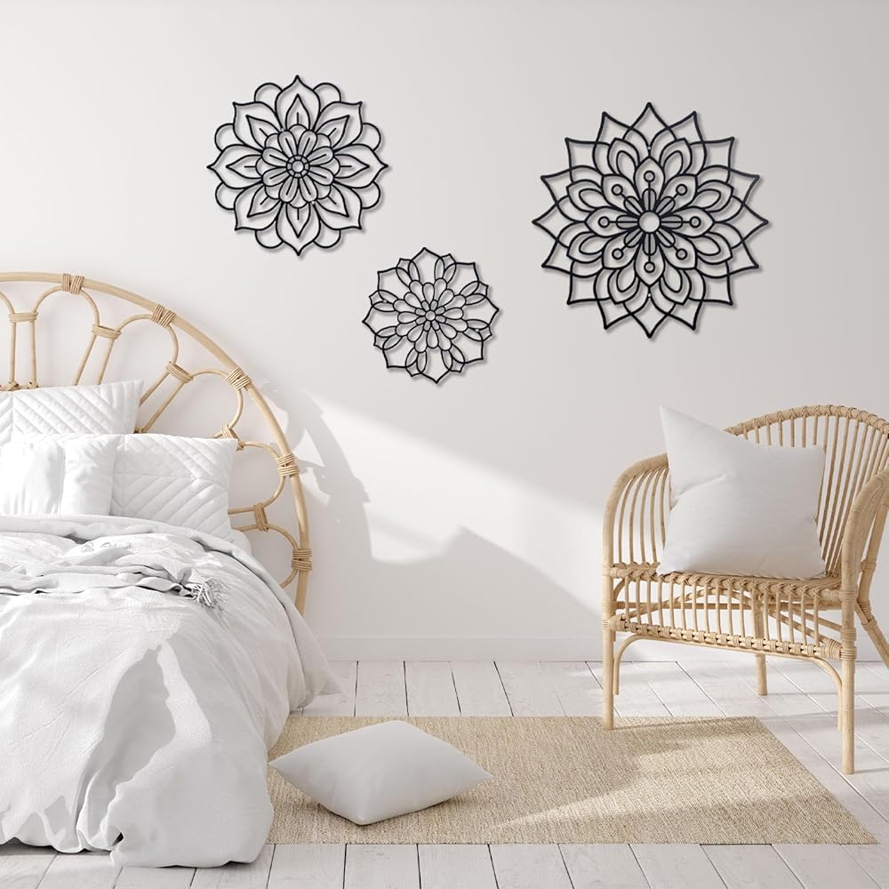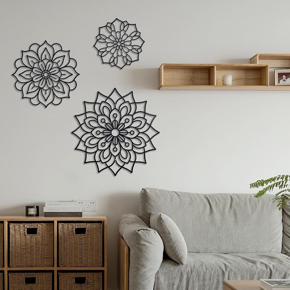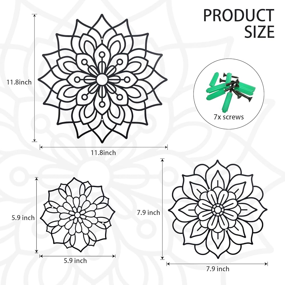 OYEFLY 3 Pieces Metal Flowers Wall Decoration,Flower Art Wall Decor Farmhouse Wall Decor (Black style2)
