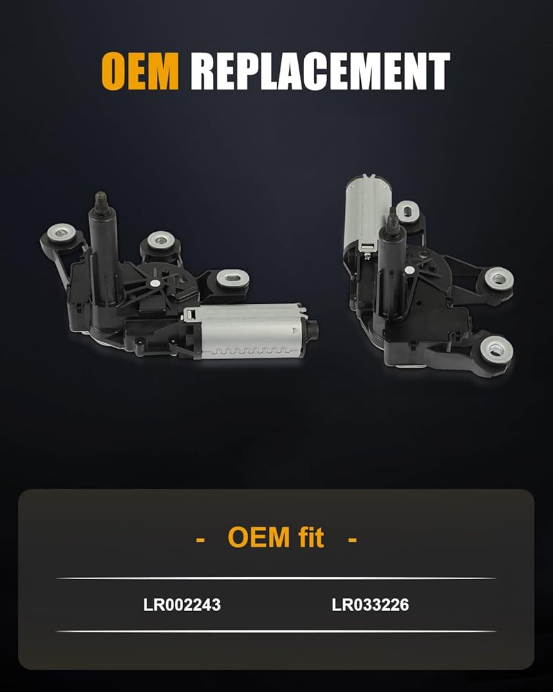 Windshield Wiper Motor Reference Number:Rear Wiper Motor Replacement OE numbe:43-4577, 434577, LR002243, LR033226;You can select the "Year/Make/Model" or other parameters of your car at the top of the list and click "Confirm" before purchasing. Check if this wiper motor is suitable for your car