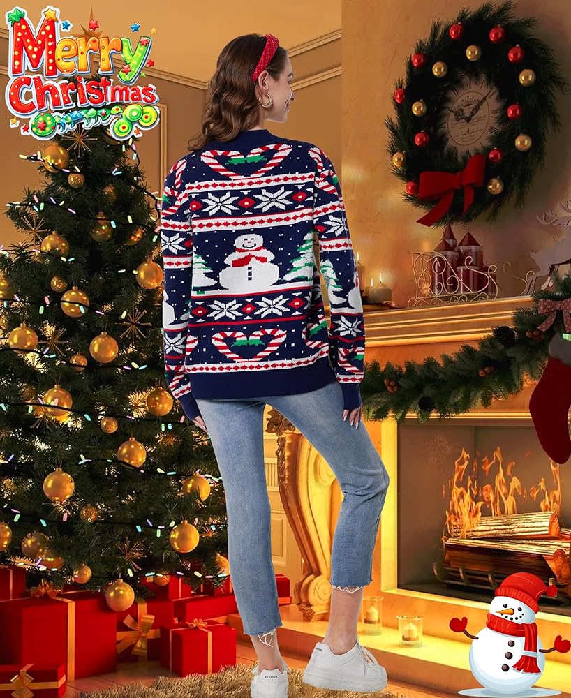 Unisex Ugly Sweater Pattern: Each ugly long-sleeved sweater has a classic Christmas element pattern design, such as a snowflake pattern in winter, a Christmas tree with a sense of festive atmosphere, etc., the overall design is based on white, red and green as the main colors, and the sweater that combines many Christmas elements is very suitable for spending a good Christmas holiday time with the family.