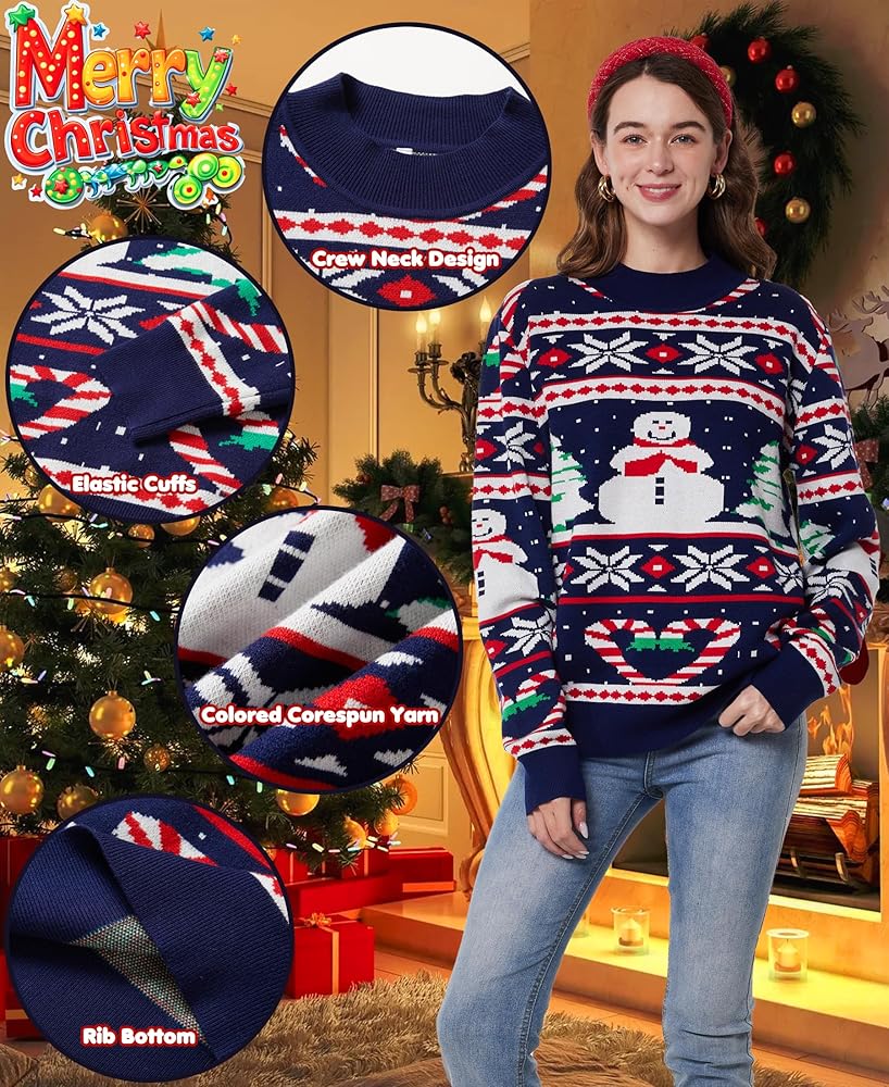 Packaging Includes, Size and Material: Package includes a Christmas-style sweater. We provide you with a detailed size chart in the display pictures. Made of colored corespun yarn (49.3% viscose, 27.7% nylon, 23% PBT), it is soft and smooth to touch, warm and cozy to wear, and keep in warmth for you even when you are outside in cold weather.