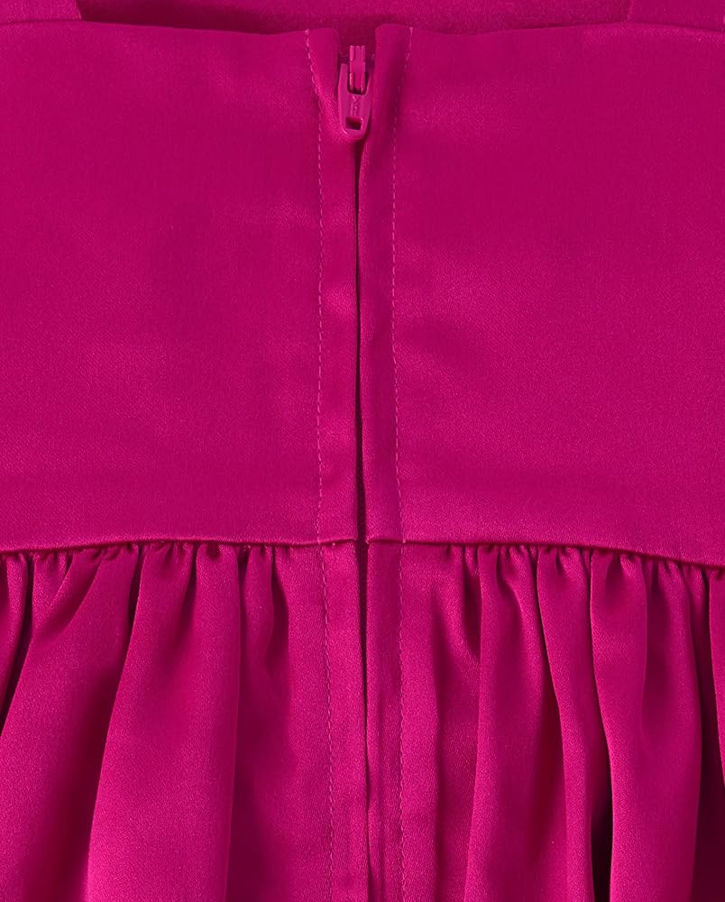 • FABRICATION: 100% polyester sequins bodice, 60% cotton/40% polyester jersey back bodice & front bodice lining, 99% polyester/1% other satin skirt, 100% polyester mesh skirt layer, 100% polyester satin skirt lining, imported