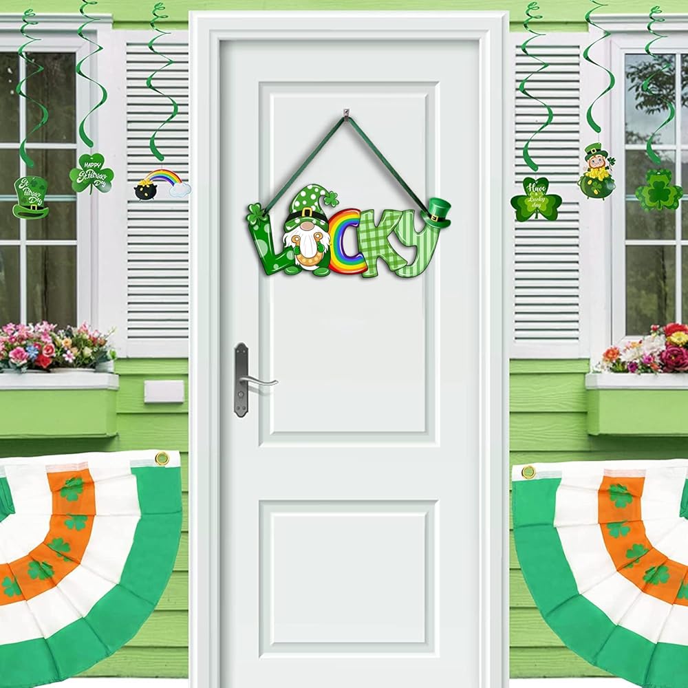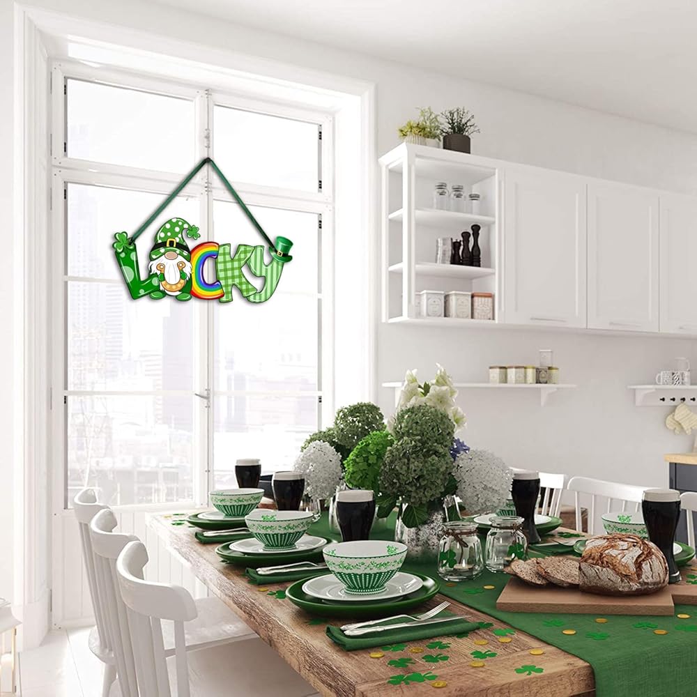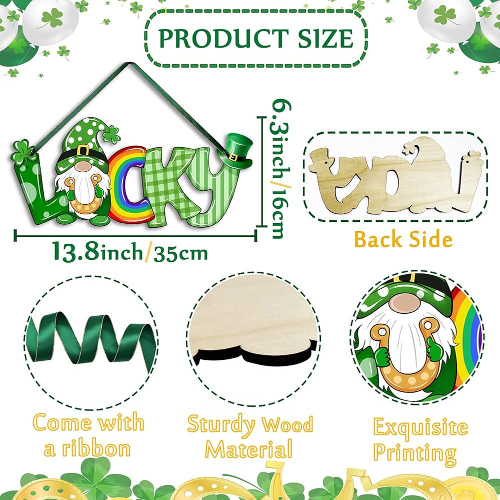 ☘Unique Design--Our St. Patrick's Day wooden sign are designed with the shape of LUCKY, very festive and delicate. With a ribbon for hanging, easy to use. Our adorable green gnome hanger is ready to bring prosperity and good luck to your home