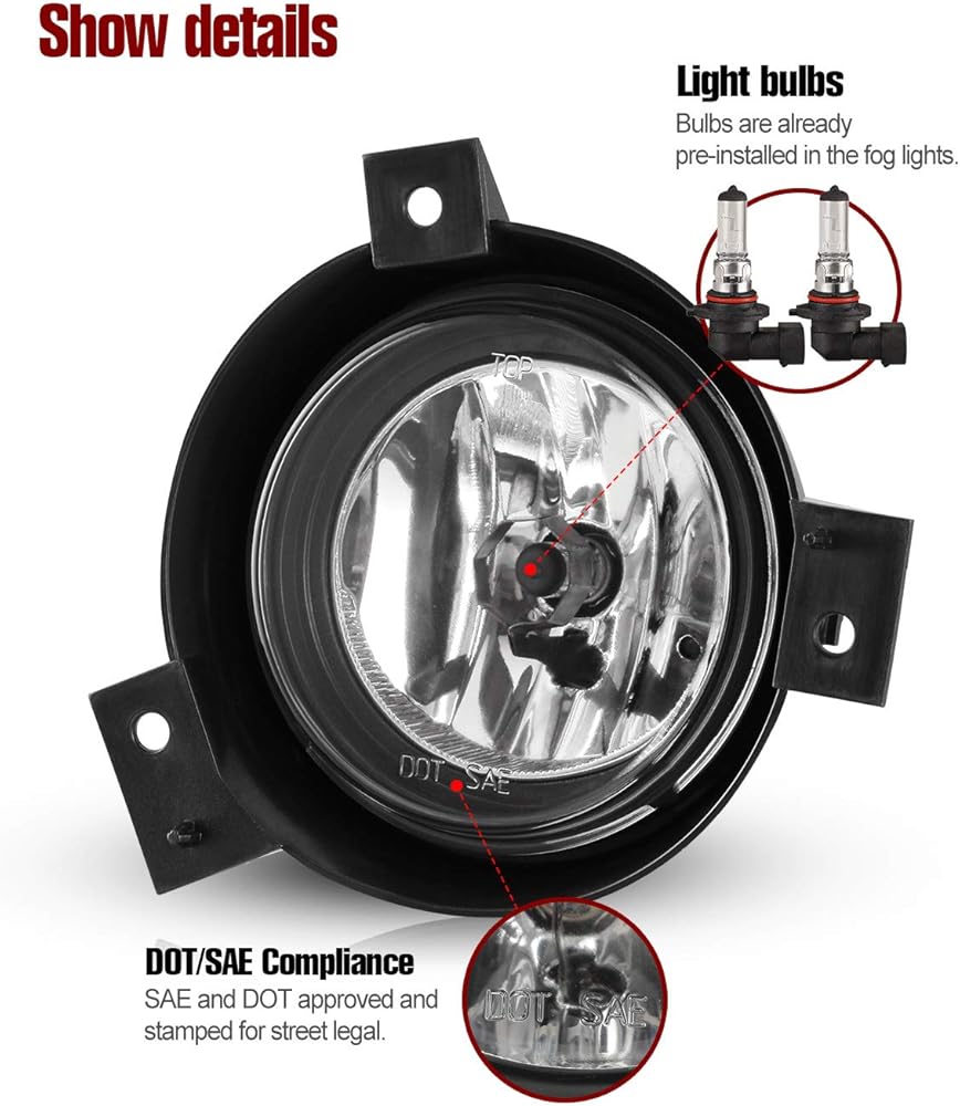 ✔DOT/SAE Compliance: The fog lights own SAE compliance and DOT approval. Thoroughly tested to meet federal and international standards, the fog lamps are fully street legal.