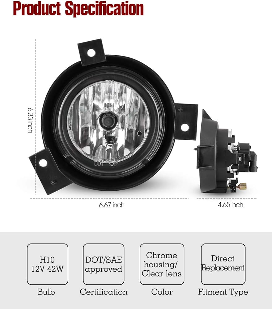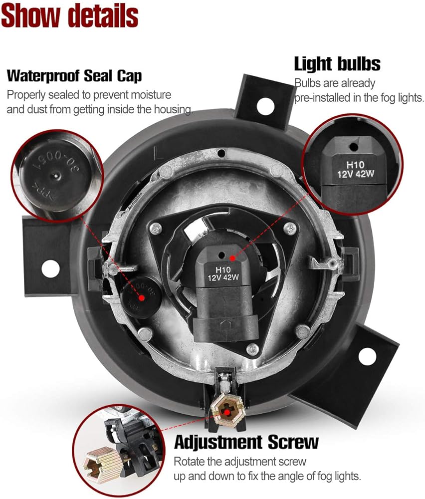 ✔Bright Illumination: The fog lights come with one pair of H10 12V 42W light bulbs, which allow you to see and be seen by oncoming drivers even through a thick fog.