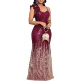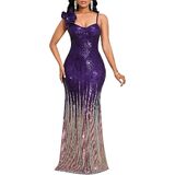 Cololura Women's Sequins Elegant Chic Halter Neck Sleeveless Solid Wedding Guest Mermaid Maxi Evening Dress