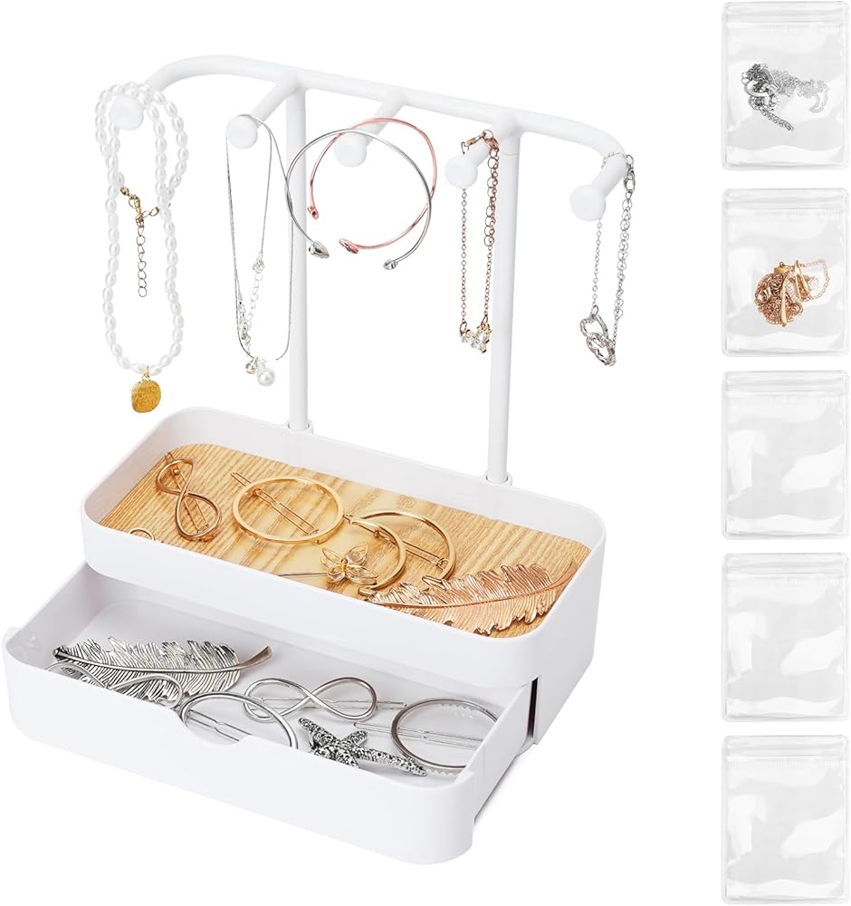 🌷【Non-slip and Removable Design】The hanging part of this jewellery organiser stand comes with an anti-slip bead design, which can effectively prevent items from falling; the bottom tray is a removable design for easy cleaning.