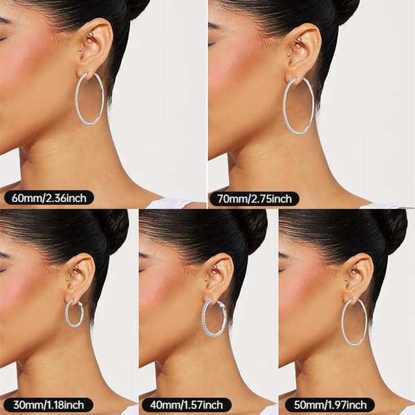 Come in 7 Sizes:Black Hoops Earrings for Women have 30/40/50/60/70mm multiple sizes for you which can meet your daily needs.2mm Thin Hoop Earrings for Women with shimmering rhinestone detailing,lightweight and comfortable to wear all day.Black sparkle earrings are a great statement piece for any outfit, all eyes will definitely be on you when you accessorize with our Black Hoops Earrings for Women.