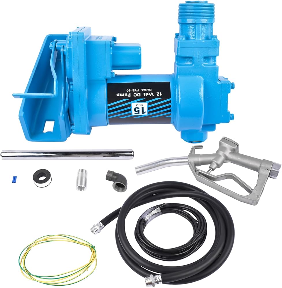 ★【Superior Quality】- Weonefit 12V 15 GPM Fuel Transfer Pump body is made of cast iron, which is sturdy and durable. The pump body adopts a waterproof design, and the pump has a built-in filter and a bypass valve. Package include Discharge Hose & Auto Nozzle.