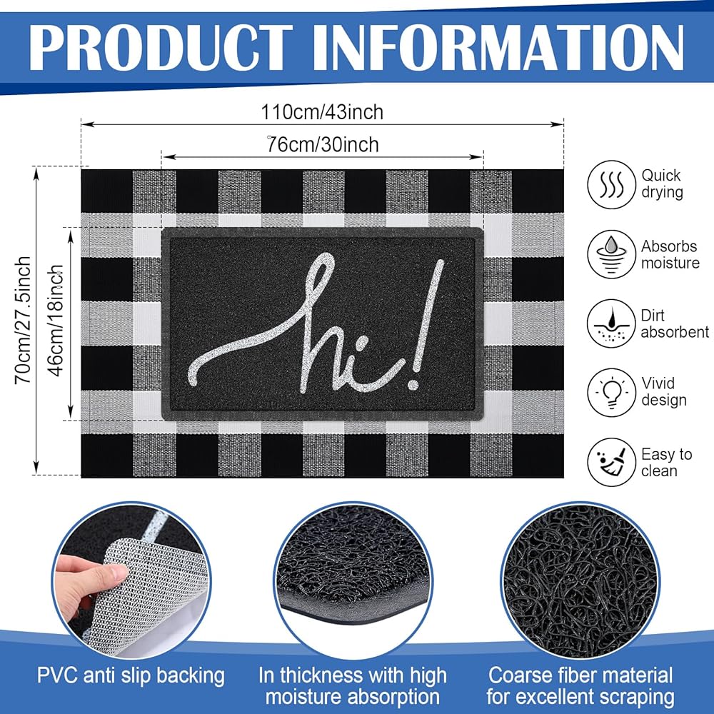 Nice and Elaborate Combination: you will receive 1 Hello doormat and 1 black and white buffalo checkered rug, simple and classic; You can put them together or separately at different entrances to welcome your guests